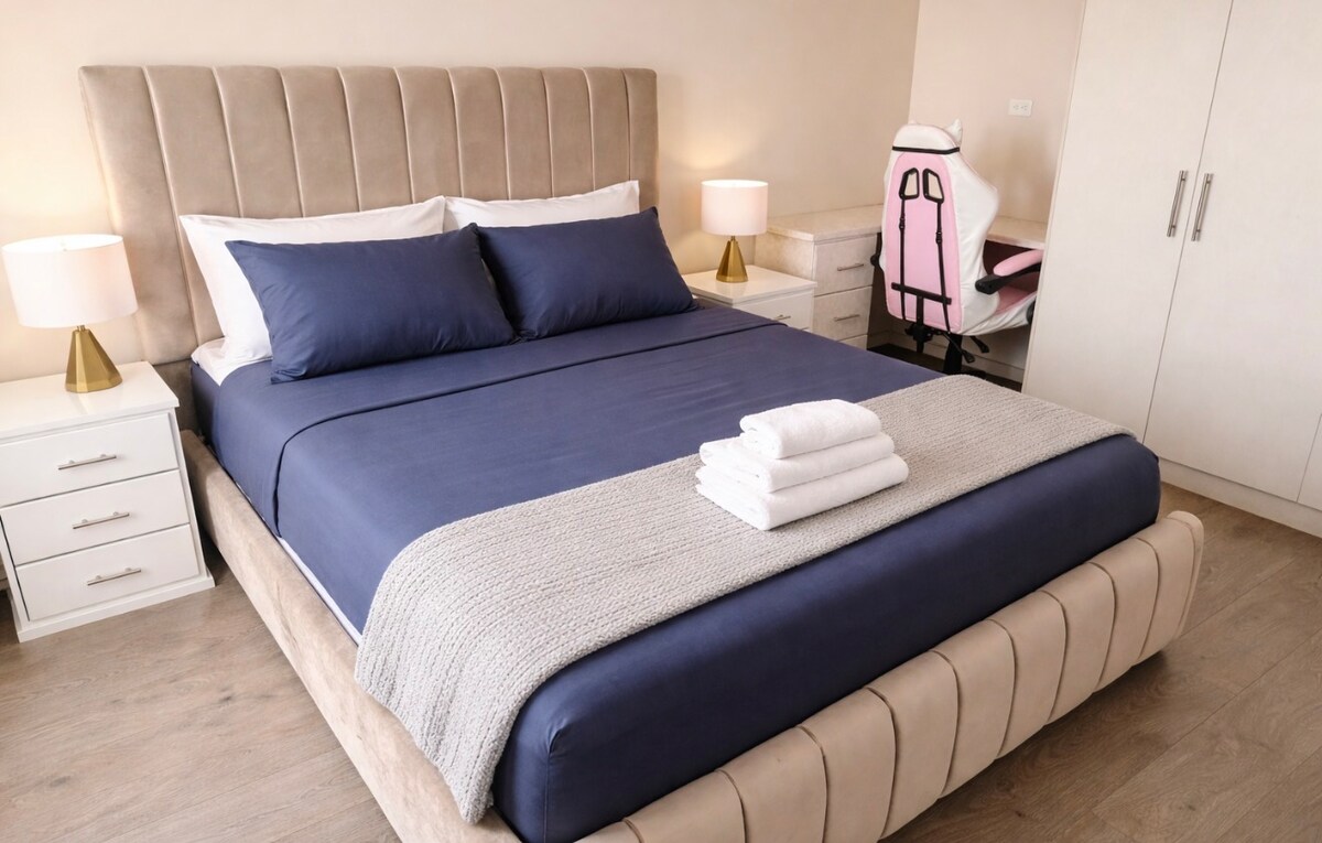 Es un hermoso departamento de dos dormitorios, estilo urbano moderno, con entrada independiente, y mucha tranquilidad, consta de sala, comedor y una cocina completa con todos los implementos, además te dejamos café y té para que te prepares como si estuvieras en casa. Te dejamos toallas, chocolate y agua en tu hospedaje. Se encuentra en planta baja, es de fácil acceso. Tiene 3 Tv plasma con Netflix, Amazon Prime y HBO, además cuenta con internet de alta velocidad. Incluye Garage gratuito.