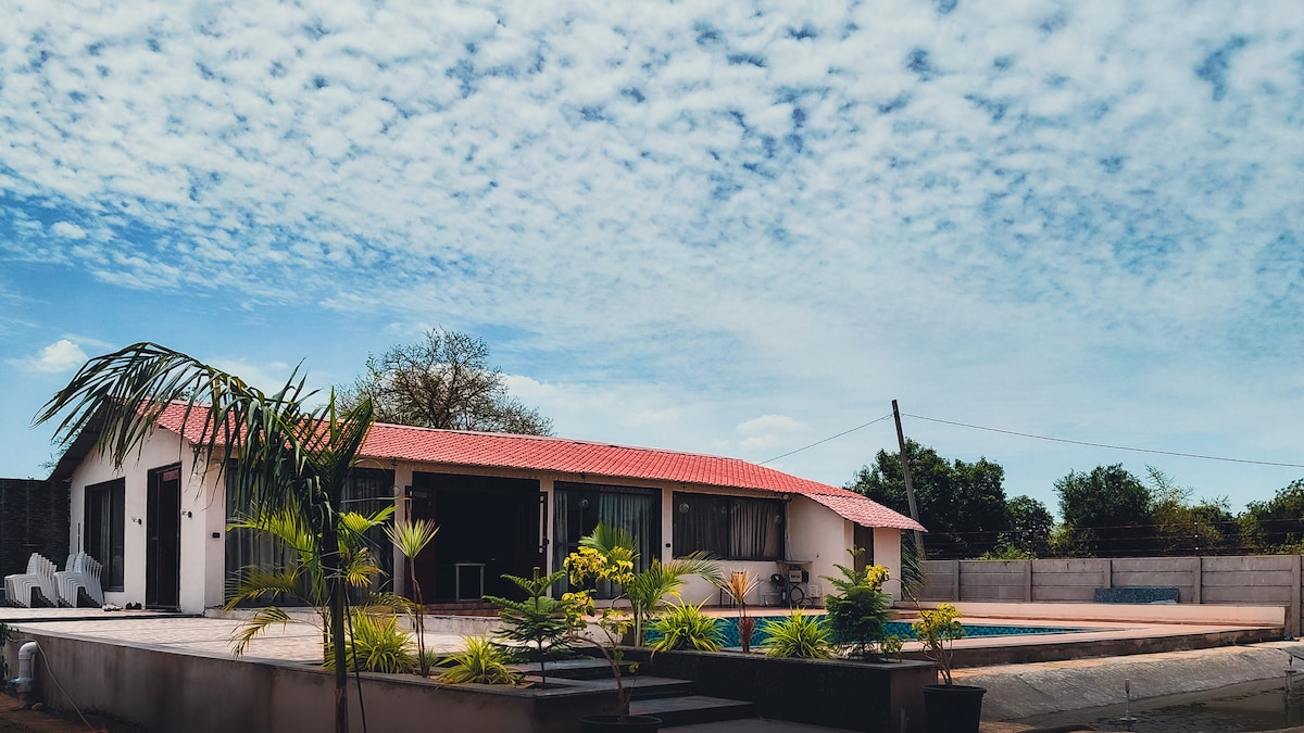 Odkryj urok tego wykwintnego gospodarstwa. Zaledwie 16 km od tętniącego życiem miasta zanurz się w spokoju w 2 starannie zaprojektowanych ogrodach z orzeźwiającym basenem. W pełni umeblowany dom wiejski oferuje nowoczesne udogodnienia, w tym klimatyzację/RO Water, GAZOWĄ KUCHENKĘ, LODÓWKĘ, WIFI i AIRFIBER, TV, KUCHENKĘ MIKROFALOWĄ i WYGODNĄ PRALKĘ. Niezależnie od tego, czy szukasz relaksu, czy przygody, to miejsce zapewnia idealne połączenie komfortu i spokoju na niezapomniany pobyt.