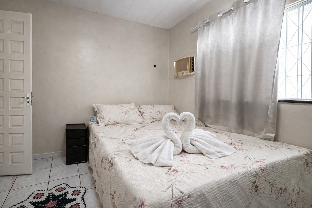 Cozy Ground Floor House with Unbeatable Logistics for COP 30 in Belém! - Air conditioning in both bedrooms, - Smart TV, - Wi-Fi - Home Office Space - 2 Parking Spaces - Fully equipped kitchen - Laundry room Ideal for up to 5 guests We are located in a safe and quiet neighborhood of Belém, strategically positioned for events and business. Close to convention centers and the city's main attractions. Distances: 2.0km International Airport 2.5km City Park 6.1km Basilica of Nazaré
