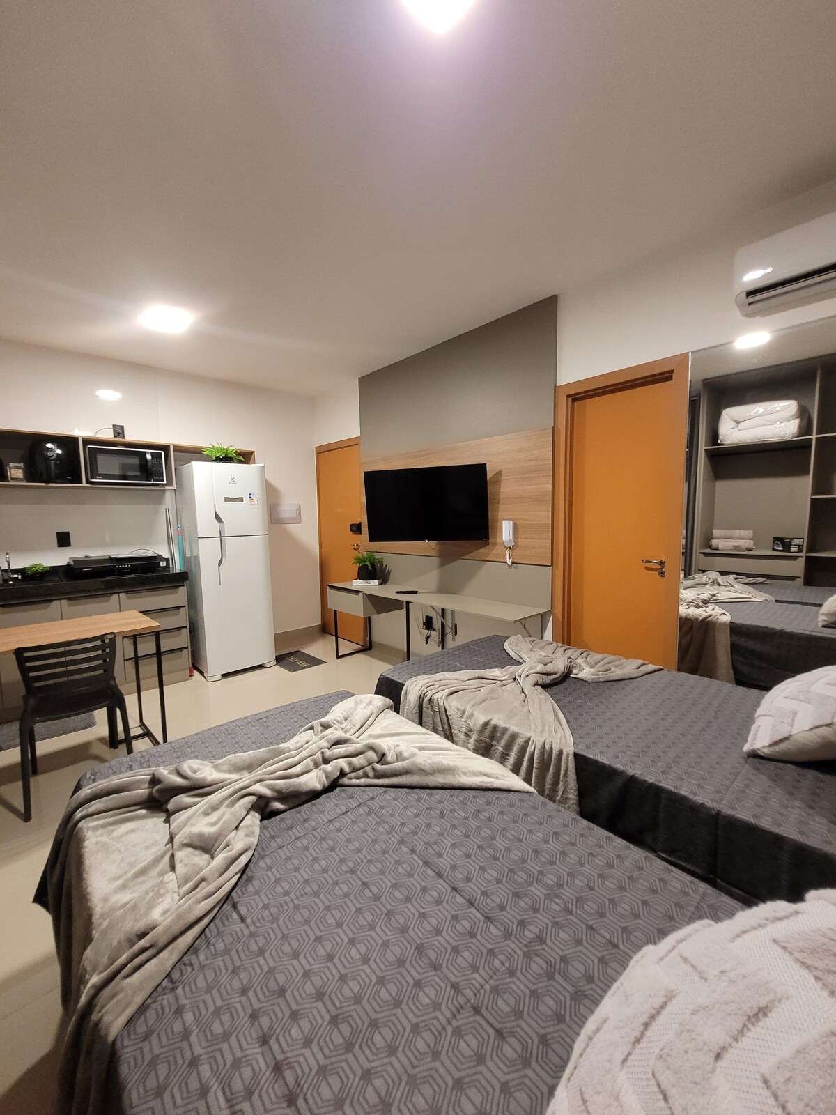 HIT SKY, Studio aconchegante, moderno e funcional, ao lado do Hospital Ânima e em frente a UniEvangelica, pensado para oferecer conforto e praticidade durante sua estadia. O espaço é bem iluminado, organizado e equipado para receber hóspedes que buscam descanso, trabalho ou lazer. Tudo preparado para que você se sinta em casa desde o primeiro momento. Aqui você encontra tranquilidade, conforto e praticidade em um só lugar.
