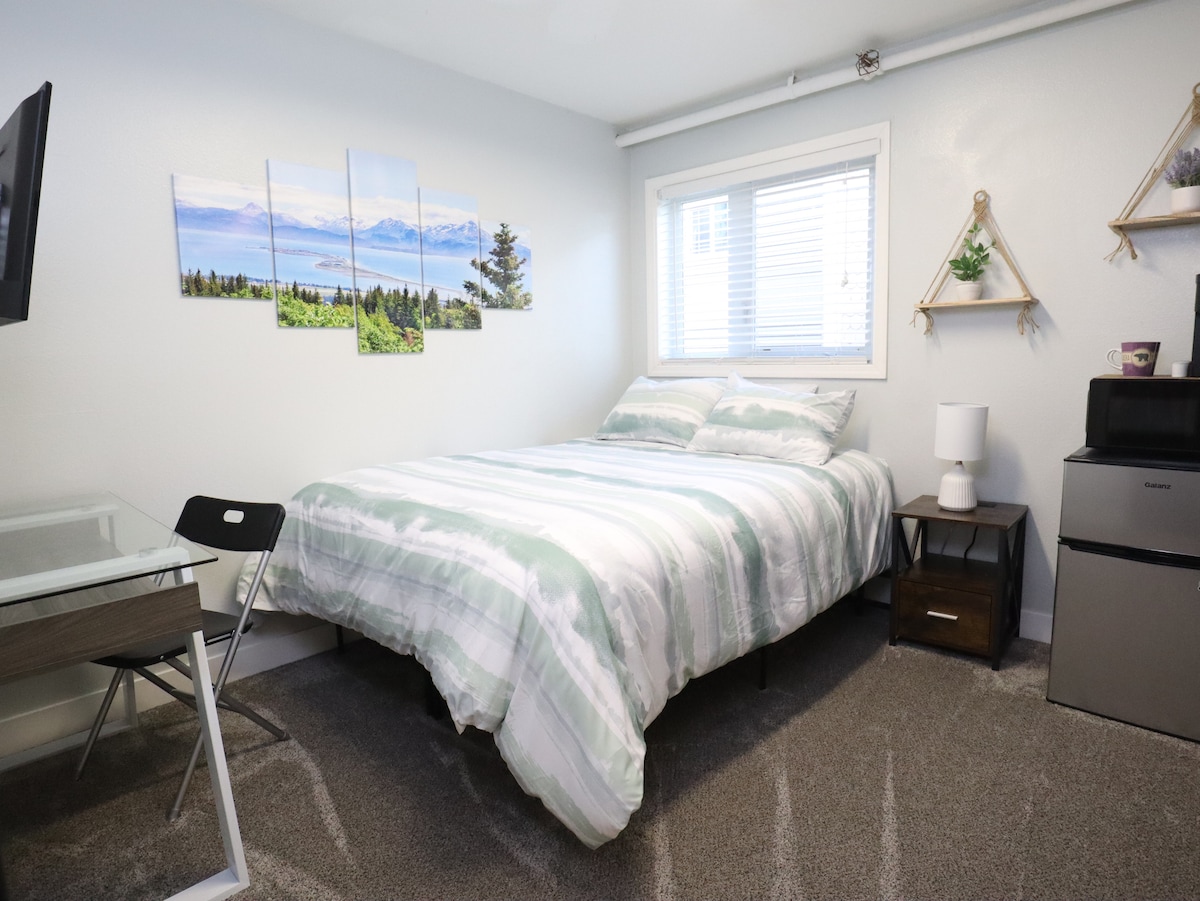 Just remodeled and updated! Spacious private studio in trendy Turnagain/Spenard area. Conveniently located in close proximity to downtown, Ted Steven's airport and midtown! One mile from Safeway Carrs and a short walking distance to the Coastal Trail, bus stops, municipal parks and the Rustic Goat restaurant/coffee shop/bar. Great space for couples, families and single travelers from all backgrounds. Aesthetically charming, abundant natural light, airy, verdant and lots of amenities.