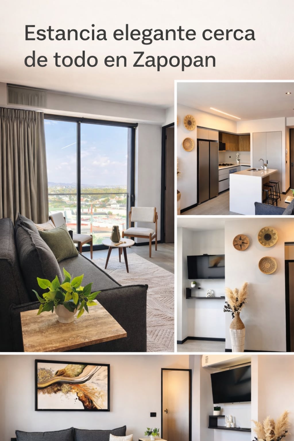 ✨ Ciesz się wyjątkowym pobytem w Lobby 33, jednym z najnowocześniejszych i najbardziej luksusowych budynków w dzielnicy Andares w Zapopan. Ten elegancki apartament oferuje: 🛌 2 sypialnie z: jedno duże łóżko jedno duże łóżko 🛁 2 pełne łazienki z najwyższej jakości wykończeniem 🍳 Kuchnia wyposażona we wszystko, czego potrzebujesz do gotowania 🛋️ Salon i balkon ze spektakularnym widokiem na miasto Szybkie 🖥️ Wi-Fi ❄️ Klimatyzacja prywatny 🚗 parking