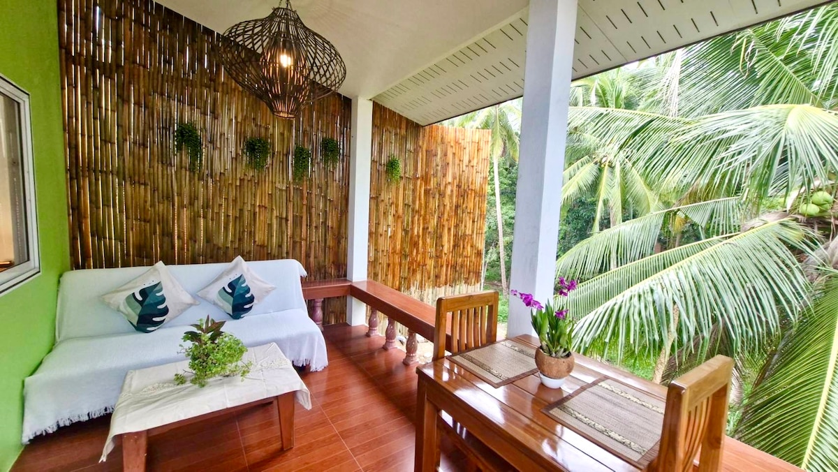 ✨ Przytulny tropikalny dom – urocze miejsce na odpoczynek z 1 sypialnią, otoczone bujną zielenią 🌿. Idealne dla par, podróżujących w pojedynkę i cyfrowych nomadów poszukujących spokoju i komfortu w pobliżu Zen Beach. Wypij poranną kawę na tarasie, zrelaksuj się w spokojnym ogrodzie lub pracuj zdalnie dzięki szybkiemu Wi-Fi. Idealne połączenie tropikalnego spokoju i nowoczesnej prostoty w samym sercu wyspy 🌺