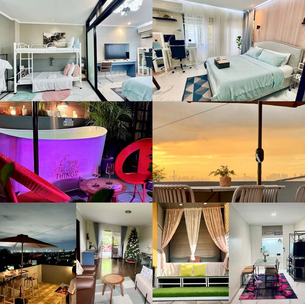 Witaj w naszym domu. Twój idealny dom z dala od domu! Nasz wspaniały 3-piętrowy apartament z 3 sypialniami i 5 łazienkami oferuje przytulny luksus i przestronne mieszkanie, dzięki czemu jest idealnym miejscem dla rodzin, przyjaciół lub pracowników zdalnych, którzy szukają spokojnego mini wypoczynku. Obudź się przy oszałamiającym panoramicznym widoku na Laguna de Bay i wypij poranną kawę na balkonie, oddychając świeżym powietrzem.
