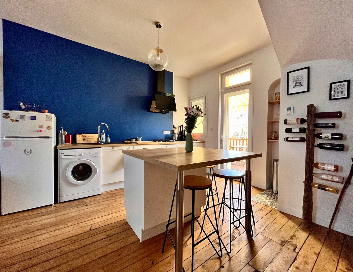 Charmante petite maison, entièrement rénovée, baignée de lumière, sans mitoyenneté. Profitez d’un jardin clos et ombragé, parfait pour se détendre ou prendre des repas. La maison est située à 2 pas du centre-ville et d’un grand espace vert naturel avec son ruisseau et ses jeux d’enfants. Pour les voyageurs qui arrivent en train , la ligne 2 vous amènera directement au logement. Si vous êtes en voiture, le stationnement est gratuit dans la rue.