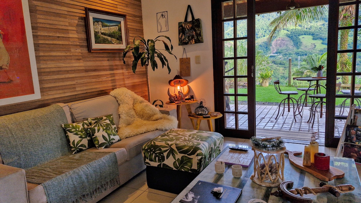 Morada das Artes z widokiem na morze. 42-hektarowa farma z widokiem na morze, coś wyjątkowego w Angra i w pobliżu atrakcji turystycznych i handlu. Znajduje się 5 minut drogi od plaż, oferując atrakcję łączącą plażę i wiejskie środowisko. Mamy szlaki, punkty widokowe i małe gospodarstwo. Wystrój jest wyjątkowy, z wystawami lokalnych artystów. Wskazujemy najlepsze plaże na kontynencie i organizujemy wycieczki motorówkami. Idealne dla rodzin i par. Bezpieczne i prywatne miejsce. Zobacz opinie!