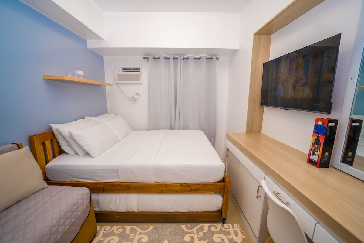 📢 PRZECZYTAJ PRZED DOKONANIEM REZERWACJI „Dom z dala od domu” – Studio Unit To przytulne studio wyposażone jest w 1 pełnowymiarowe/2-osobowe łóżko🛏️, idealne dla 2 osób, a także dodatkowy pełnowymiarowy/2-osobowy materac podłogowy (o grubości około 1 cala), 🛋️ który może wygodnie pomieścić 2 dodatkowych gości. Dodatkowy materac zostanie ustawiony tylko wtedy, gdy Twoja grupa przekroczy 2 osoby. To idealne miejskie sanktuarium🏙️, w samym sercu tętniącego życiem kompleksu Megaworld! 🌟