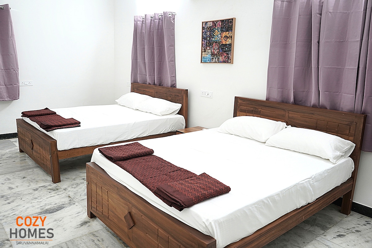 Welcome to Sumi's Homestay in Tiruvannamalai! Stay in our spacious 1st-floor home, perfect for families and friends. 1BHK with AC, Wi-Fi, Comfortable beds, a modern Western-style bathroom with hot water, and a fully equipped kitchen with UPS. Relax on the sunny balcony. 24/7 security camera monitoring. We also have another property in the same building, Preetha’s Palace and Goutham's Castle, a 2 BHK with AC rooms. airbnb.com/h/preethaspalace airbnb.com/h/gouthamcastle Book your stay today!
