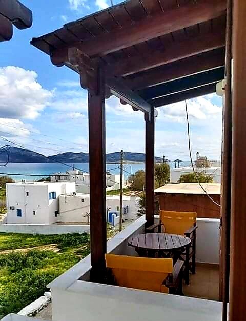 Jest to tradycyjny cykladowy dom na pierwszym piętrze, niezależny, z dużymi tarasami z widokiem na morze i wspaniałe zachody słońca. Znajduje się w bardzo spokojnej okolicy, dziesięć minut spacerem od wioski. (Droga utwardzona, oświetlona). Kuchenka do gotowania i duży zlew na zewnątrz. Na jednym z tarasów znajduje się podwójne łóżko do opalania lub do spania w objęciach... gwiazd!!!!!!