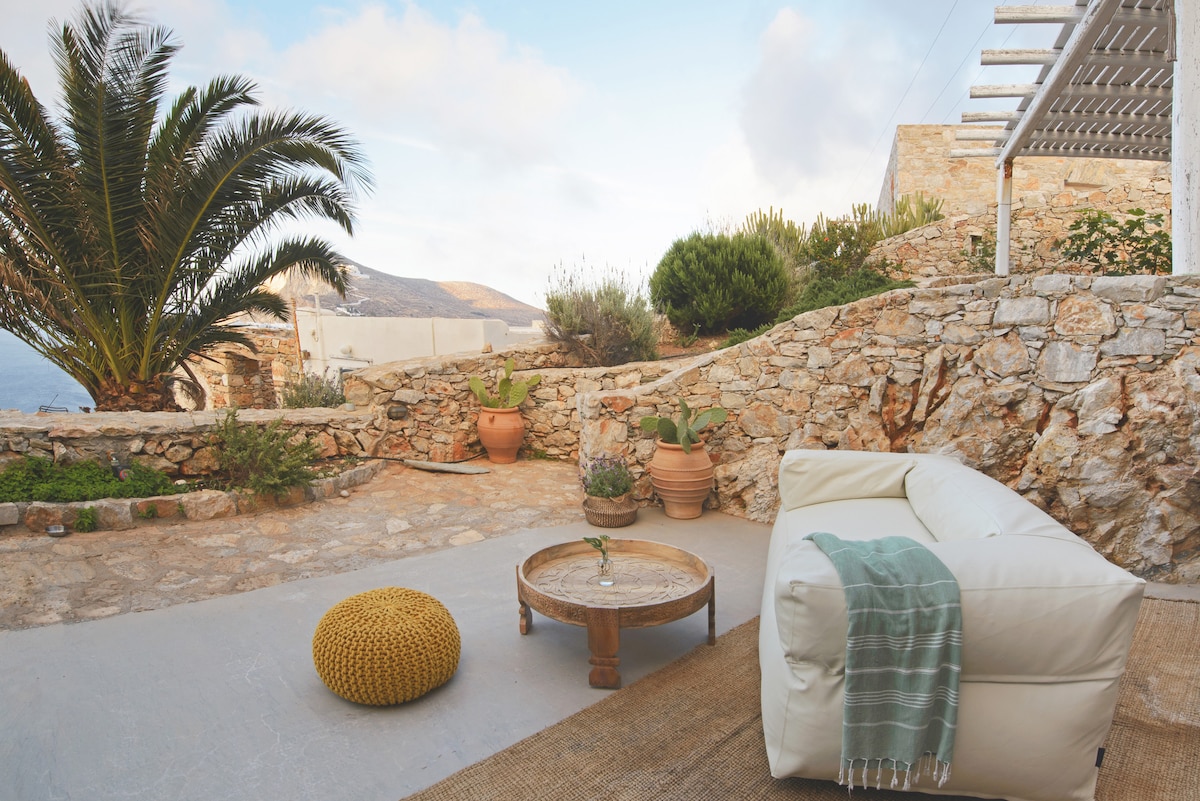 Welcome to "Themonia to Taximi", a traditional one level house with mediterranean gardens in one of the most unspoilt island of the Cyclades. "Themonia to taximi" is a traditional built house. It is located in the picturesque village of Ano meria in the northern part of Folegandros. Ano Meria is easily the most traditional part of the island. Thanks to its location in virgin nature, dramatic rocks and unforgettable sunsets. .