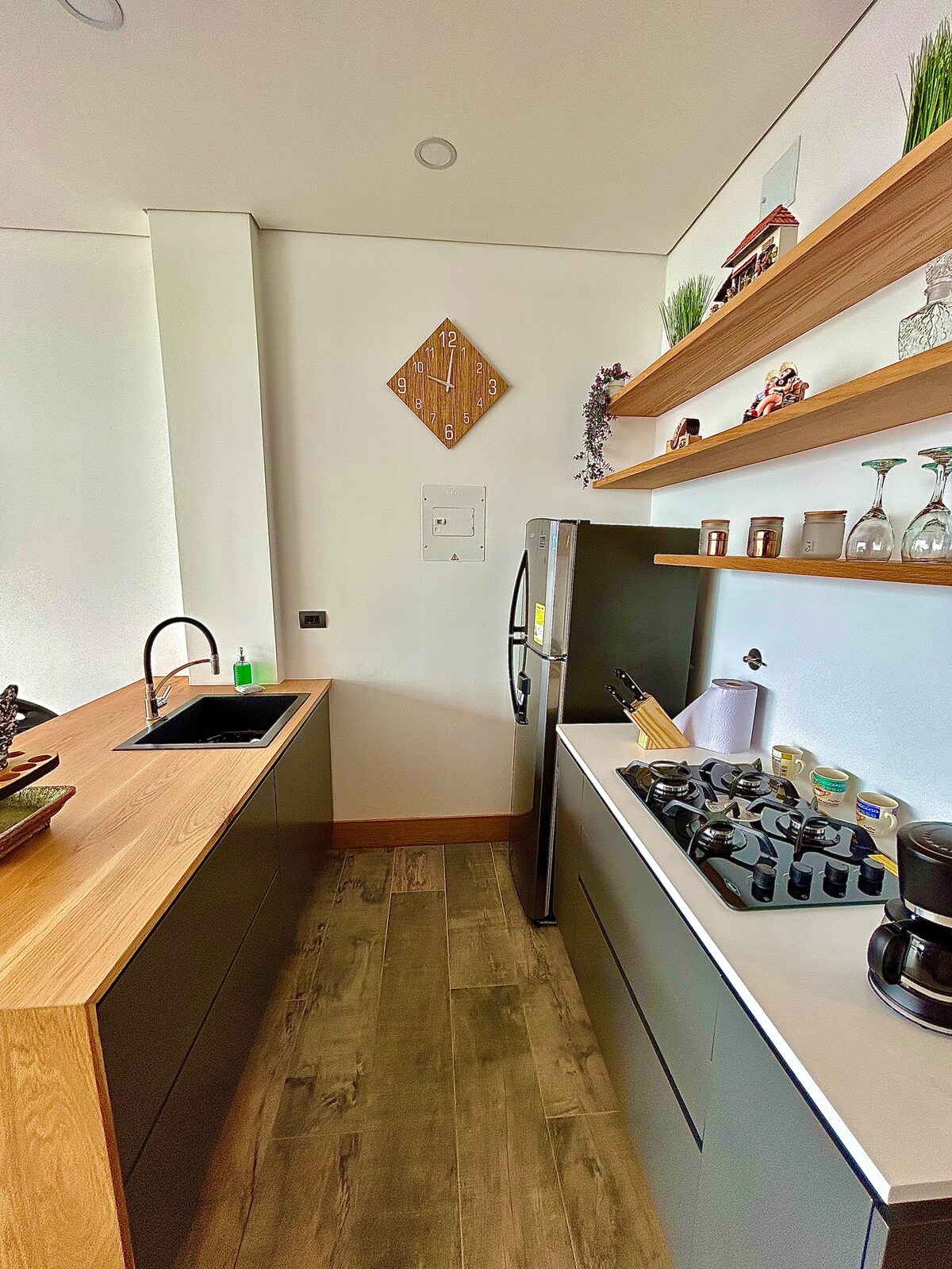 Suite completamente amoblada de 28 m2, con aire acondicionado y cocineta. Ubicada en una de las mejores zonas de Medellín, en un barrio muy tranquilo y cerca de todos los sitos de interés. La Suite cuenta con una vista espectacular a la ciudad y a las montañas. Podrás hacer uso de la zona de coworking, gimnasio y un espectacular café que ofrece diferentes tipos de bebidas a base del mejor café colombiano, podrás disfrutar de tu bebida en la terraza que se encuentran en el 2do piso del edificio.