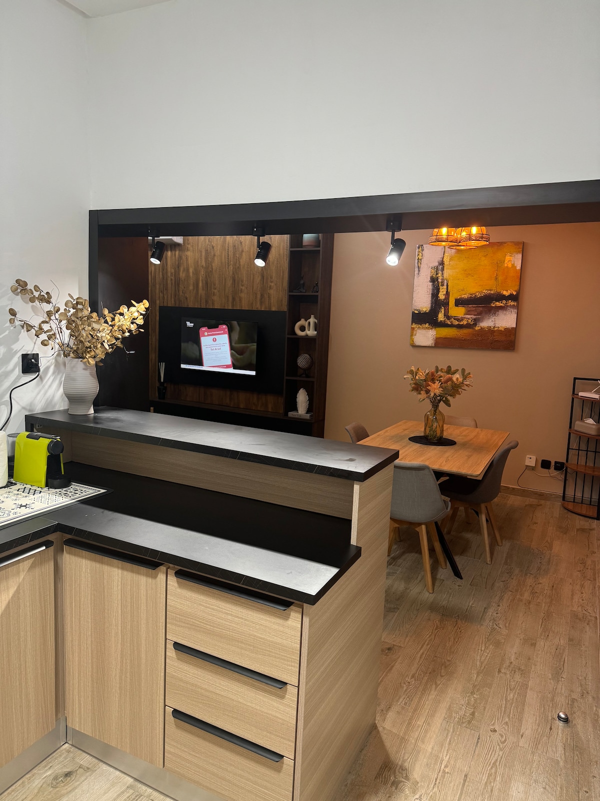 Zanurz się w świecie wyrafinowania, gdzie elegancja wyraża się w odcieniach czerni, bieli, szarości i drewna. Każdy szczegół został zaprojektowany tak, aby stworzyć luksusową i ciepłą atmosferę, idealną dla gości szukających niezapomnianego pobytu. Ciesz się jasną przestrzenią mieszkalną, w pełni wyposażoną kuchnią w stylu europejskim, wysokiej jakości pościelą i nieograniczonym Wi-Fi z 2 podłączonymi telewizorami. Idealna dla podróżnych szukających wygody i stylu, ta rezydencja obiecuje niezapomniany pobyt.