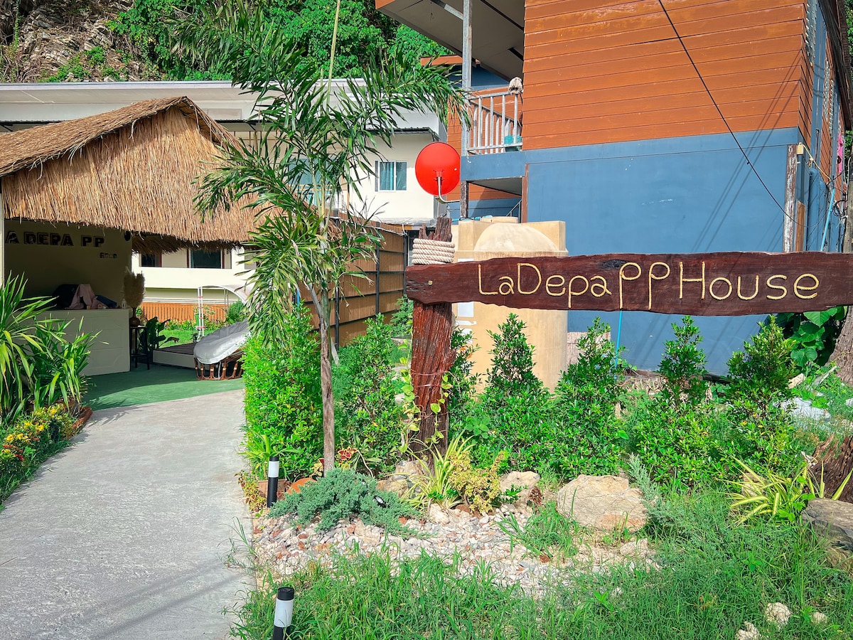 Nowo otwarte pokoje w pobliżu plaży na wyspie Phi-Phi. W otoczeniu gór panuje cisza, a ogród z huśtawkami, w którym można usiąść i zrelaksować się. Jest też ładna plaża z czystą wodą, odpowiednia do opalania i pływania Tylko 3 minuty do plaży. Zaledwie 70 metrów od pokoi Tylko 5 minut od szpitala Tylko 10 minut od molo i targu Tylko 15 minut do małpiej plaży kajakiem Oddychaj na łonie natury La Depa