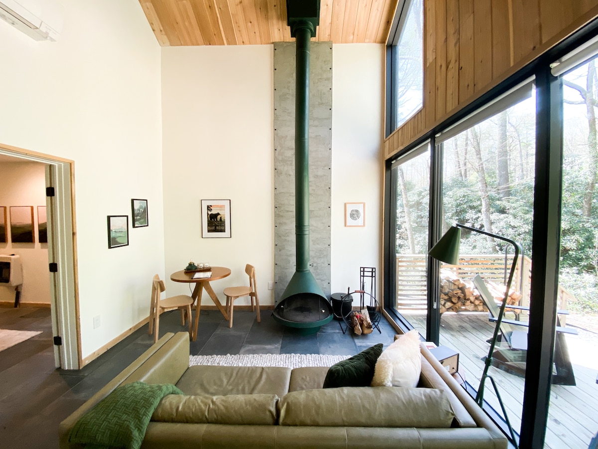 LUNORI: THE NEW MODERN NOSTALGIA Come relax, unwind, and take in the natural beauty of the mountains. At Lunori we've crafted the ultimate relaxation experience to aid you in unplugging and reconnecting with yourself and those around you. The loft offers a king sized bed, full kitchen, wood burning fireplace, porch, heated floors throughout, and modern amenities.