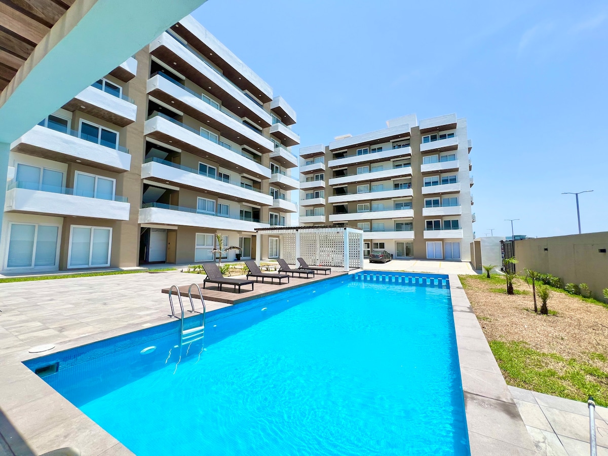 Nowy apartament z basenem w pobliżu plaży i stadionów