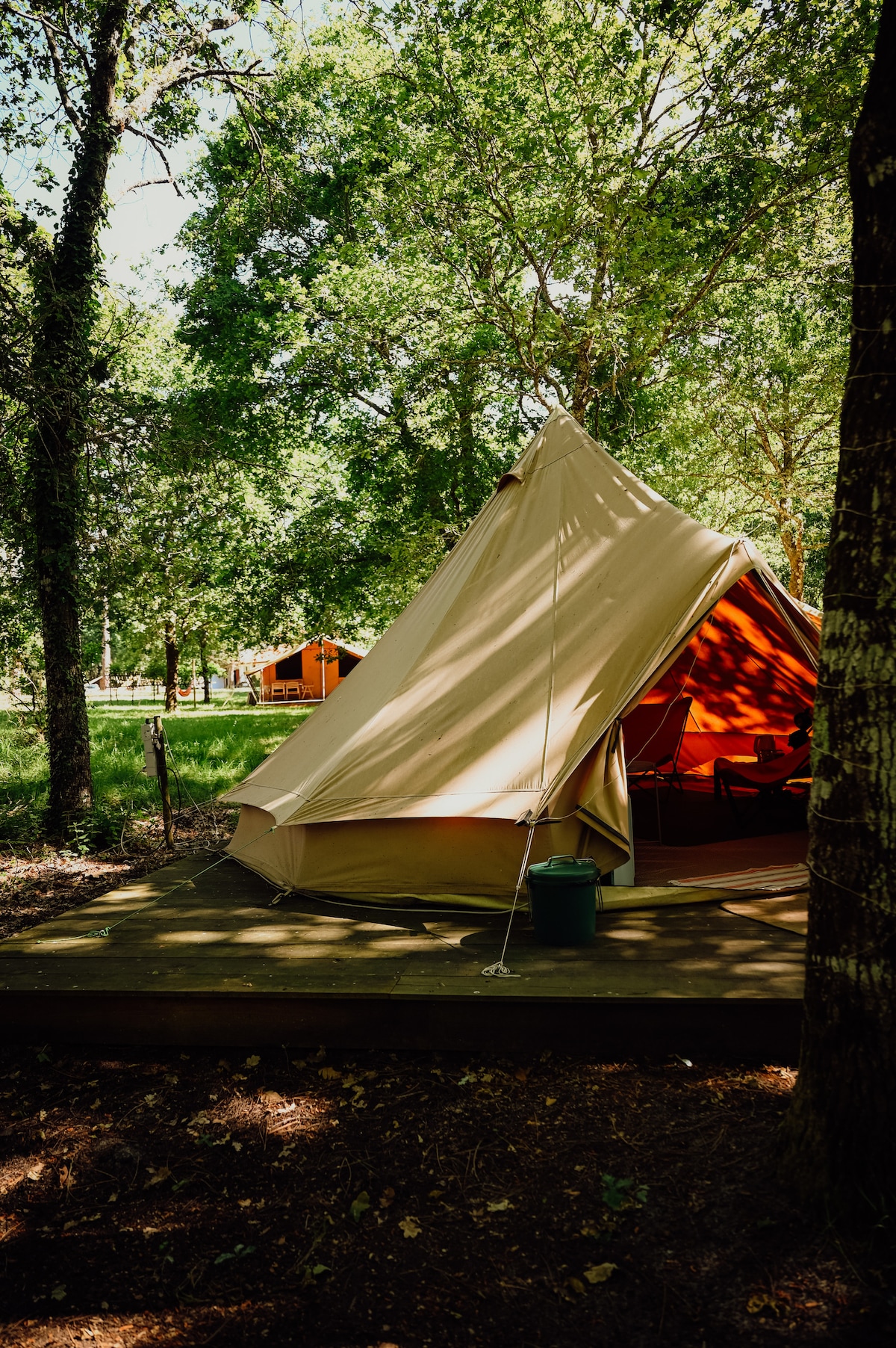 Located in the La Téouleyre natural area, 7km from the ocean (direct access to the cycling path from the property), we offer our customers looking to get closer to nature during their holidays the "Oak Tipi," set up on a wooden platform under the oak grove. Enjoy a camping experience in a relaxing setting, thanks to this fully equipped tent: Large 160 bed, Glass minibar, Senseo coffee maker, and electric kettle.
