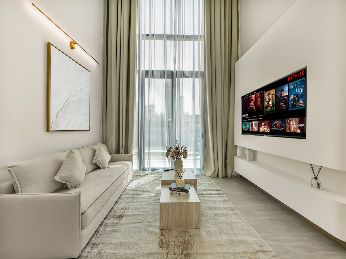 Wejdź do willi, w której przestrzeń, światło słoneczne i styl płynnie się łączą. W samym sercu Jumeirah Village Circle (JVC) czeka na Ciebie idealna lokalizacja – wystarczająco blisko, aby poczuć puls centrum miasta i Mariny, a jednocześnie wystarczająco daleko, aby odpocząć w prywatnym sanktuarium. W pełni wyposażona kuchnia zachęca do powolnych śniadań i długich kolacji, a pluszowy salon – z 85-calowym telewizorem – tworzy atmosferę na wieczory filmowe lub wyluzowane popołudnia. To nie jest miejsce na pobyt – to miejsce, w którym czujesz się jak w domu.