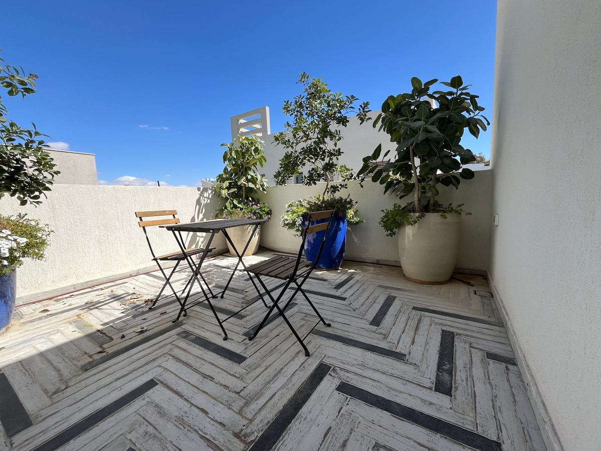 Urocza przestrzeń położona na drugim piętrze z oddzielnym wejściem i widokiem na pustynię. Możesz rozpocząć dzień od kawy, podziwiając spektakularny wschód słońca na prywatnym tarasie z widokiem na góry. Znajdziesz tu przestronną sypialnię, miejsce do pracy, łazienkę i w pobliżu w pełni wyposażoną kuchnię. Zapraszamy do Negew, aby wędrować po pustyni – wspiąć się na wydmę, pospacerować po Ein Ekev lub po prostu zgubić się w wąwozach Nahal Havarim.