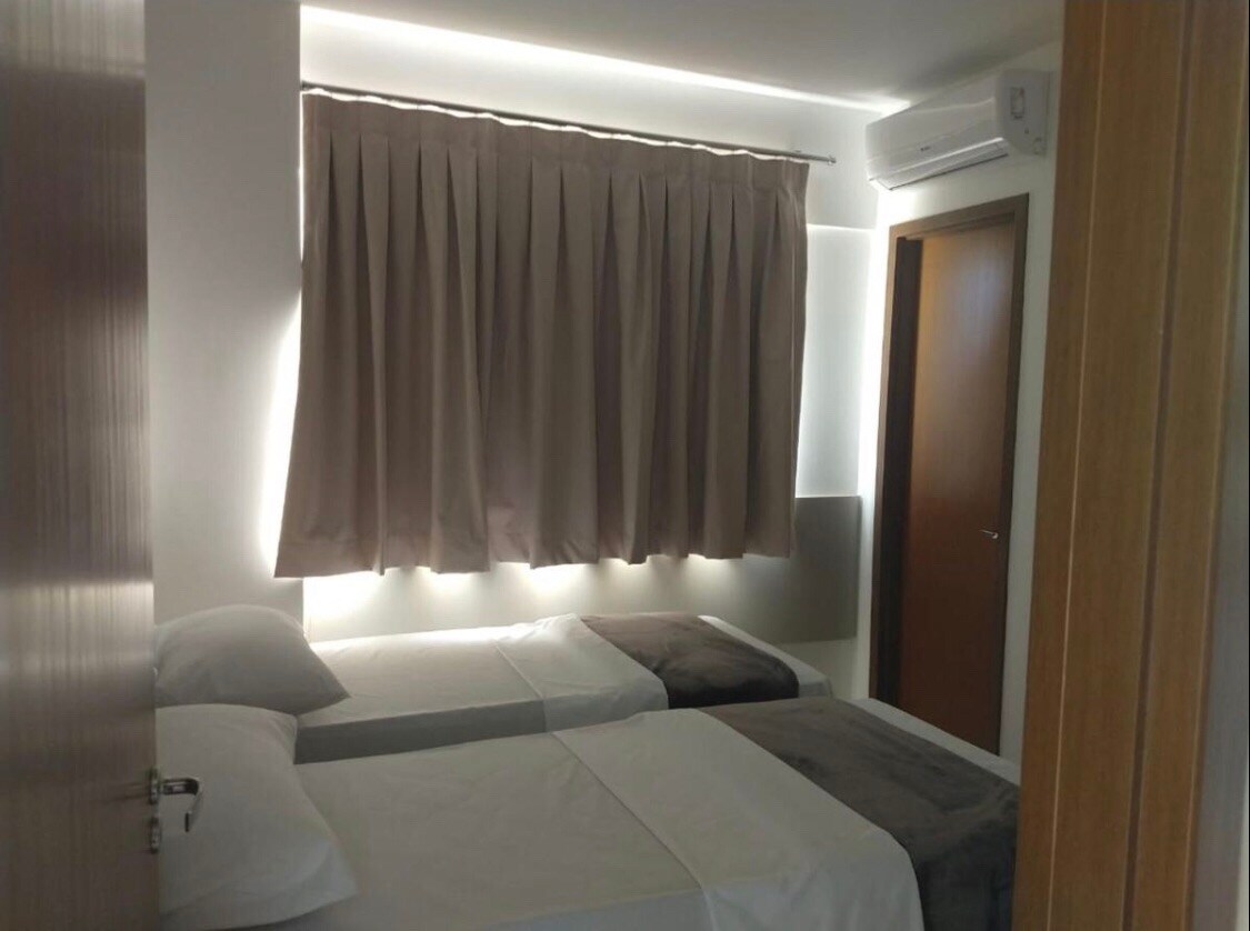 W komplecie 1 klimatyzator w sypialni, wentylator sufitowy, kuchnia z kuchenką, lodówką, kuchenką mikrofalową, klimatyzacją i podstawowymi przyborami kuchennymi. Apartament dla 5 osób dorosłych lub 4 osób dorosłych i 2 dzieci w wieku do 12 i 6 lat (niemowlęta liczą się jako osoby dorosłe). Całodobowy park wodny z basenami z ciepłą i zimną wodą, krytym basenem, spa, basenami dla dzieci, siłownią, restauracją, barem z przekąskami, sauną i salonem gier. W pobliżu barów, restauracji, sklepów, klubów, targów i piekarni Caldas Novas