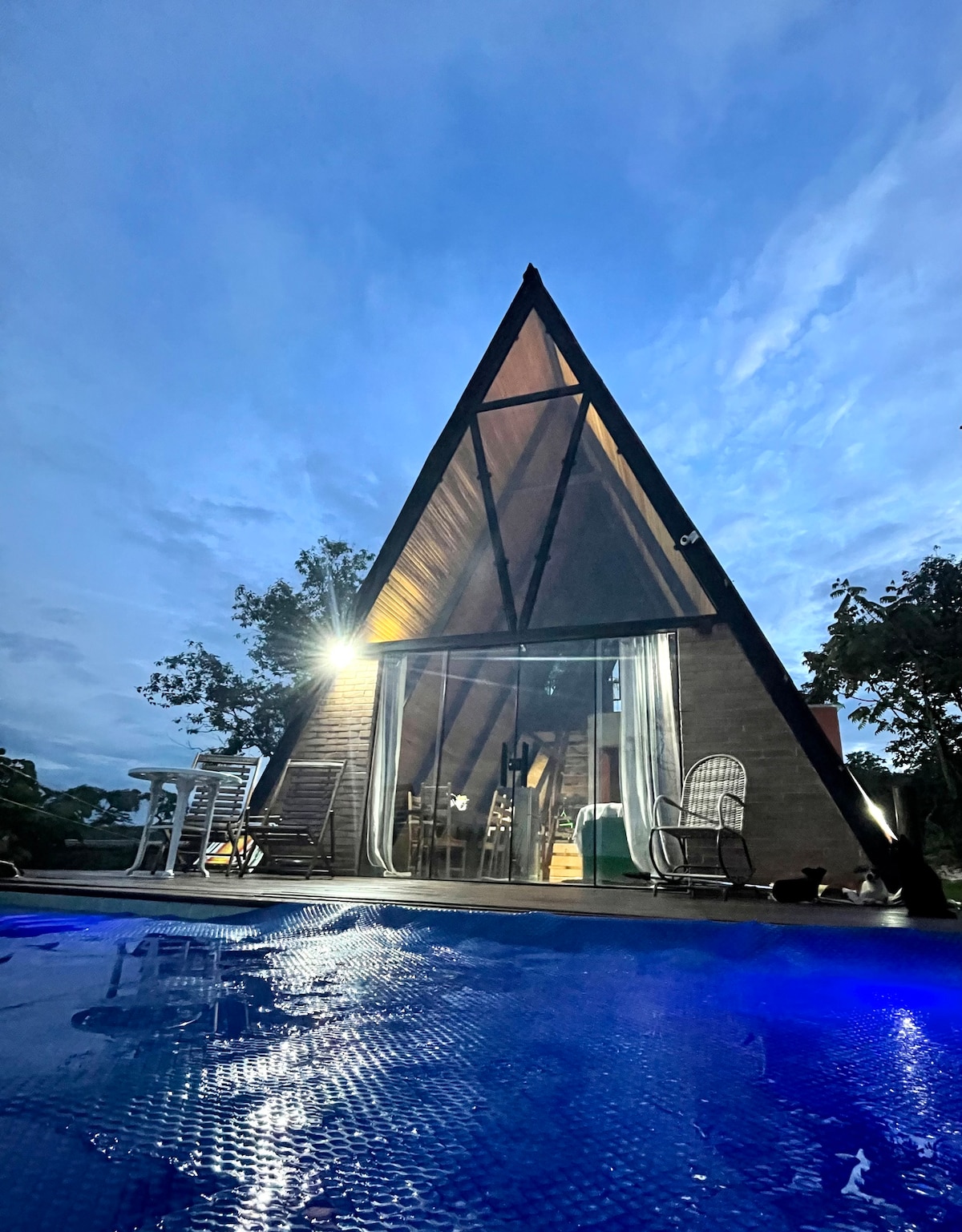 Jesteśmy „Guará Eco Chalé”, położonym w Pirenópolis Goiás. W okolicy znajduje się wiele drzew, ptaków, dzikich zwierząt i piękna rzeka, która przepływa przez naszą posiadłość. Jesteśmy bardzo blisko miasta, zaledwie 2 km stąd. Oferujemy zakwaterowanie dla par, które szukają spokoju, przytulności i kontaktu z naturą. Jesteśmy miłośnikami WILKA GUARÁ, który, podobnie jak my, mieszka tutaj, w Cerrado. Promujemy szacunek i równowagę między człowiekiem a naturą!