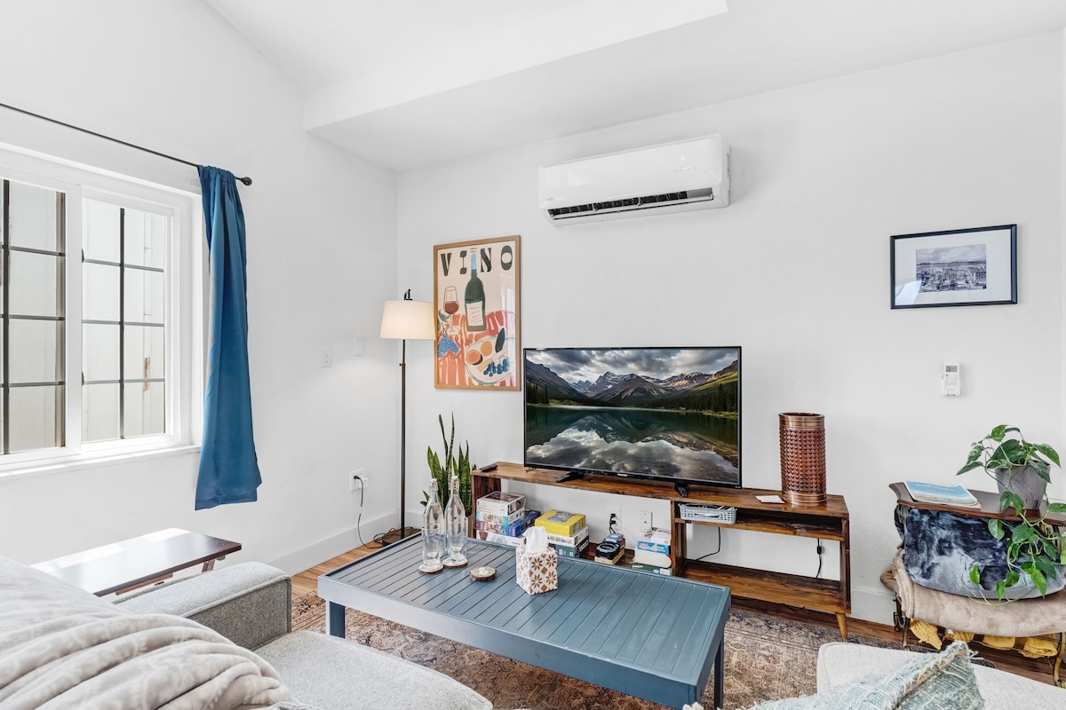 Nowoczesny raj w stylu wiejskiego domu czeka na Ciebie w tym pięknym apartamencie typu studio położonym w najbardziej pożądanej dzielnicy Denver, Platt Park. Bielone, szerokie deski podłogowe tworzą wyjątkowo spokojną atmosferę, którą podkreślają nowoczesne czarne ramy okienne. Biała płyta w jodełkę na ścianie, ciemne granitowe blaty i urządzenia ze stali nierdzewnej sprawiają, że jest to idealne miejsce, aby rano napić się kawy lub wieczorem zjeść coś pysznego po dniu spędzonym na zwiedzaniu Denver.