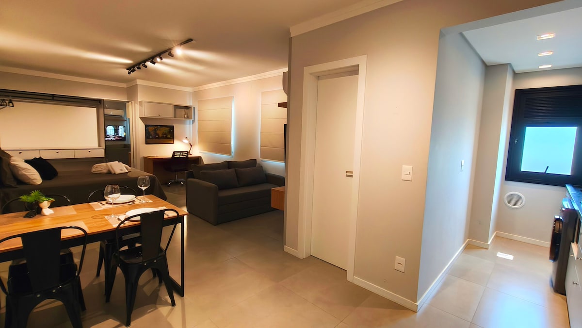 Przytulne i dobrze wyposażone studio, idealne dla dwóch osób, ale może pomieścić do 4 osób. Łatwy dostęp do BR101, dworca autobusowego, blisko centrum Joinville i zaledwie kilka minut od trasy gastronomicznej. - Nowoczesne i funkcjonalne środowisko – Miejsce na domowe biuro i Wi-Fi 600 Mb - W pełni wyposażona kuchnia - Wyposażone w pralkę i suszarkę – Wygodne i bezpieczne samodzielne zameldowanie