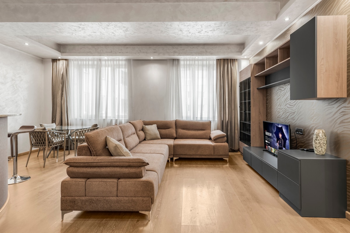 You are in for exciting adventures in Armenia. Enjoy your stay in this beautiful two-bedroom apartment, located in a PRIME LOCATION — right in the heart of the city on Northern Avenue, surrounded by trendy cafés, restaurants, brand-name shops, supermarkets, and major attractions.
