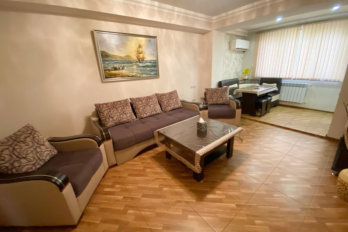 Po wspaniałych doświadczeniach z naszą pierwszą ofertą z przyjemnością przedstawiamy nasze nowe mieszkanie – idealne dla par, rodzin lub przyjaciół odwiedzających Erywań. Apartament znajduje się w nowoczesnym budynku z dwiema windami i bezpiecznym dostępem do dziedzińca, zaledwie 5 minut spacerem od Placu Republiki. • Dwie pełne łazienki • Komfortowa sypialnia i przestrzeń mieszkalna • W pełni wyposażona kuchnia • Szybkie Wi-Fi • Klimatyzacja w każdym pokoju • Smart TV, pralka, suszarka i inne Mieszkamy w pobliżu i osobiście przyjmujemy gości!