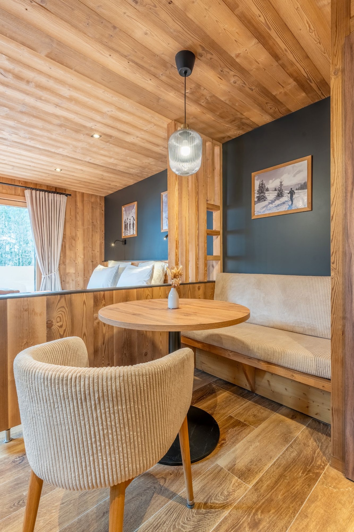 Ten przestronny loft o powierzchni 62 m² znajduje się w odosobnionej górskiej chacie bez bezpośrednich sąsiadów i posiada własny prywatny taras o powierzchni 16 m². Z każdego zakątka apartamentu roztacza się zapierający dech w piersiach widok na góry Aravis i La Tournette, który zachęca do kontemplacji. Ciesz się niezależnym dostępem przez zewnętrzne kamienne schody i wygodnym prywatnym parkingiem tuż za domkiem.