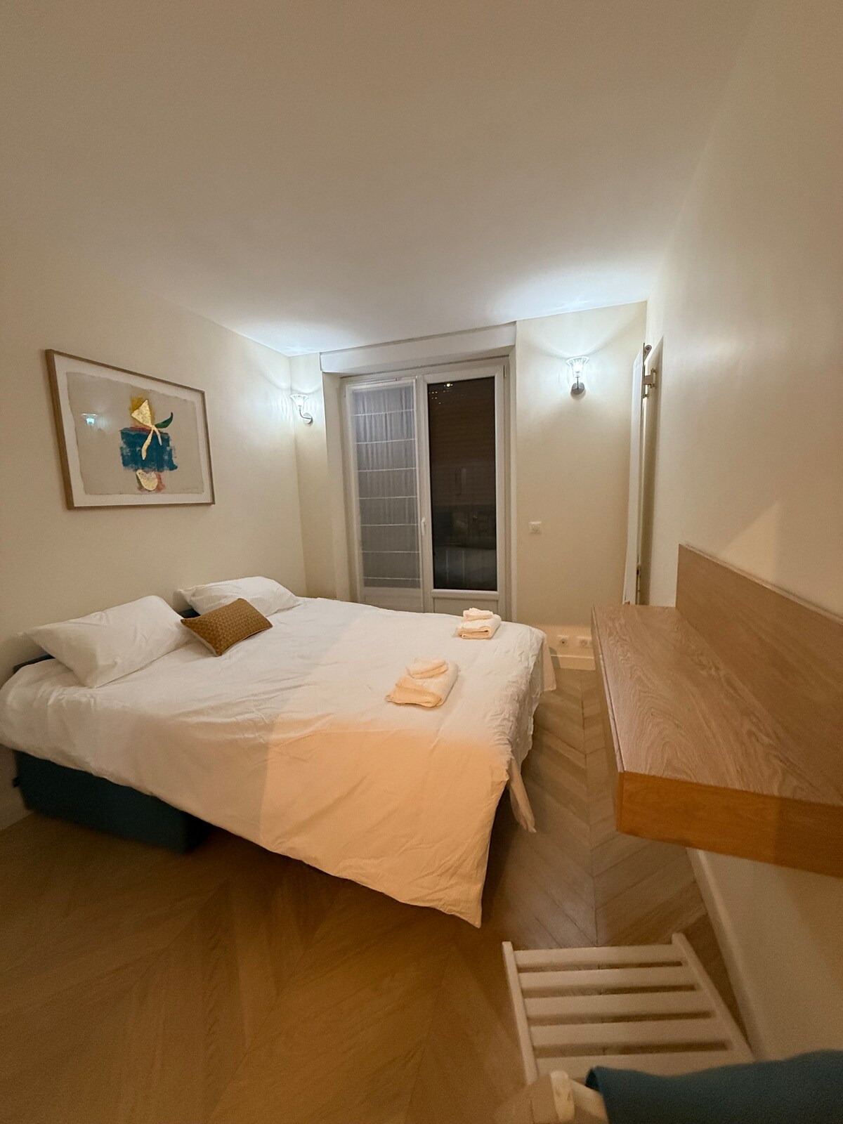 Uroczy, luksusowy, przytulny i jasny apartament o powierzchni 31 m2 (1 sypialnia – 4 osoby) idealnie położony w 16. dzielnicy Paryża, w centrum miasta, w pobliżu Trocadero, w spokojnej okolicy (5 minut od stacji metra Jasmin) z wszystkimi lokalnymi sklepami. Apartament oferuje nowoczesne i ciepłe wykończenie oraz zoptymalizowaną przestrzeń: sypialnię i salon (rozkładana sofa) oddzielone elegancką ścianką działową z wbudowanym telewizorem, który można zdjąć. Jest w pełni wyposażone (sprzęt AGD, pościel itp.), aby zapewnić spokojny pobyt.