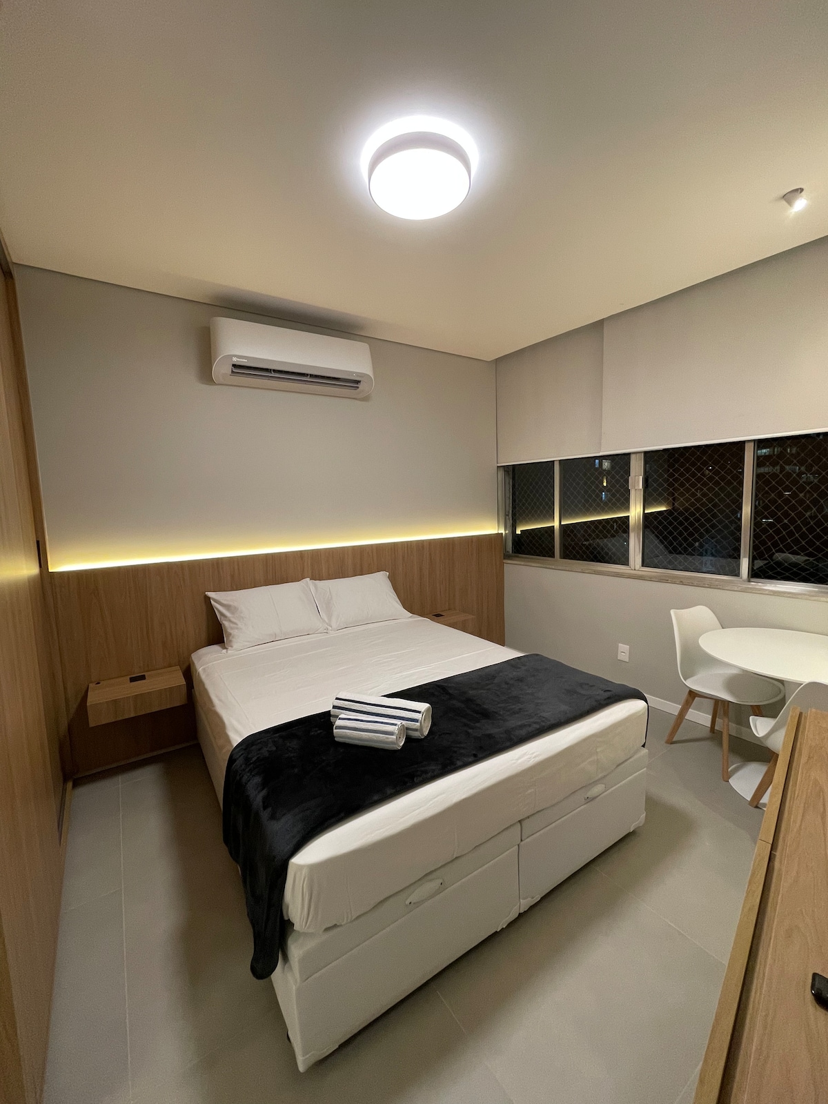 Pełne i ciche studio dla maksymalnie 3 osób, obok metra, przed Praia do Flamengo. Strategiczna lokalizacja, w pobliżu lotniska Santos Dumont i głównych zabytków miasta. Całodobowy portier, samodzielne zameldowanie, pełna kuchnia, 1 łóżko typu queen, 1 rozkładana sofa, 42-calowy telewizor smart, 350 mega internetu, klimatyzacja dzielona, wentylator sufitowy, przybory toaletowe, pralka, pościel, ręczniki, zasłony zaciemniające, prysznic z gazem.