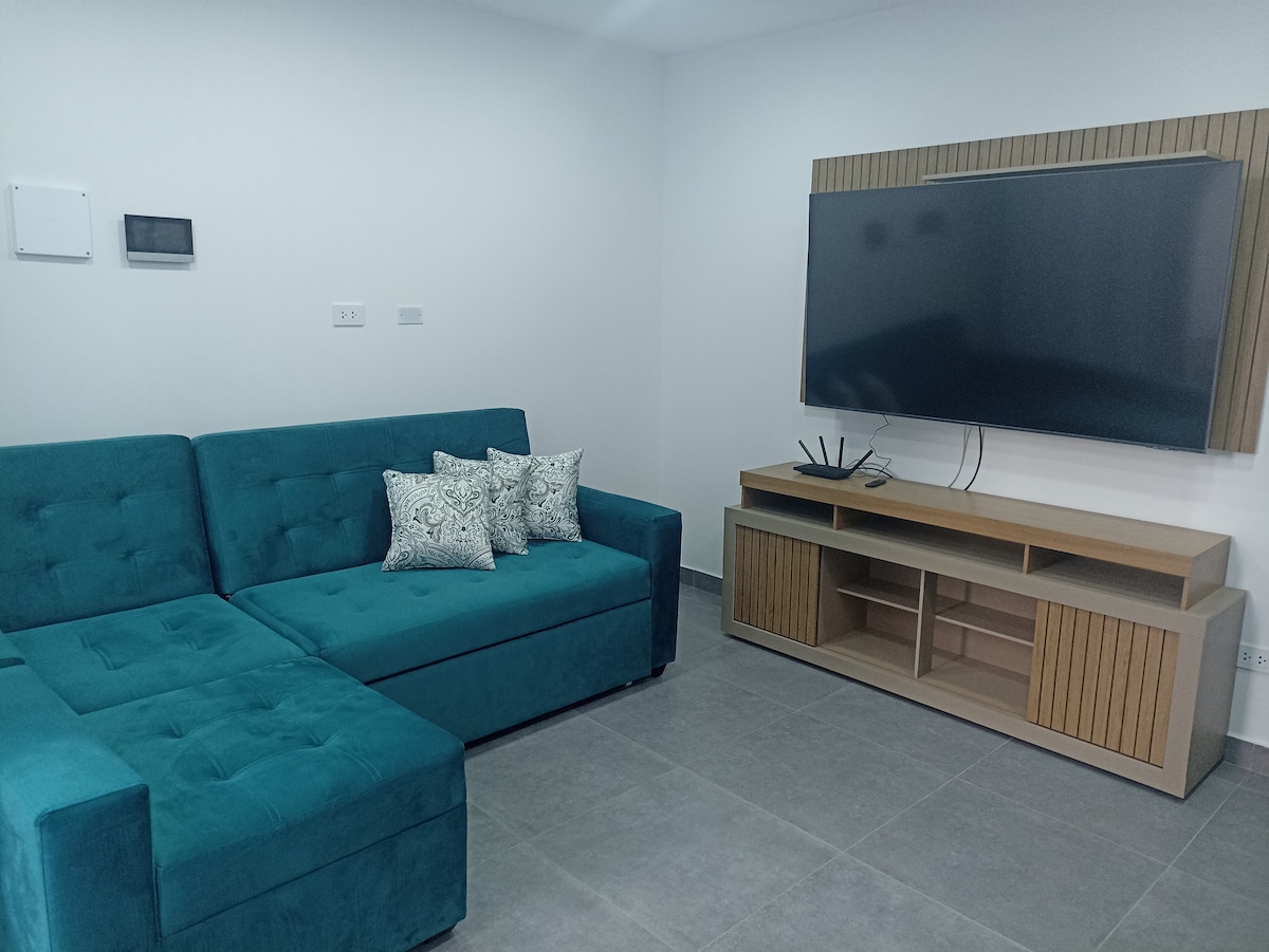 Departamento a 5 min del Mall Aventura Zona tranquila, completamente equipado TV con WiFi Netflix y Amazon Zona residencial 1 habitación con cama King y 1 Sofá cama king a 10 min del centro de la ciudad y cerca la campiña 1 baño Cocina completamente equipada con estufa a gas y por inducción Cámaras de seguridad controladas desde la sala Lavadora y secadora de ropa cerca al terminal terrestre Se presta indicaciones y facilidades para realizar turismo Estaremos gustosos d recibira su familia