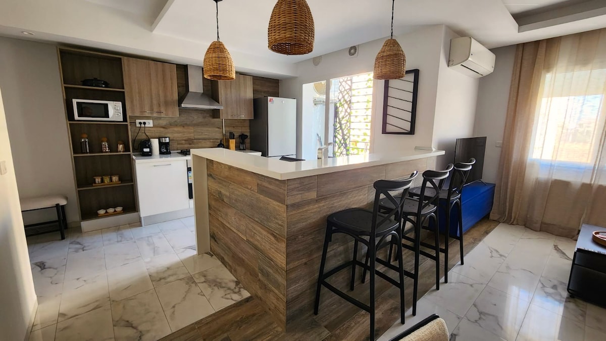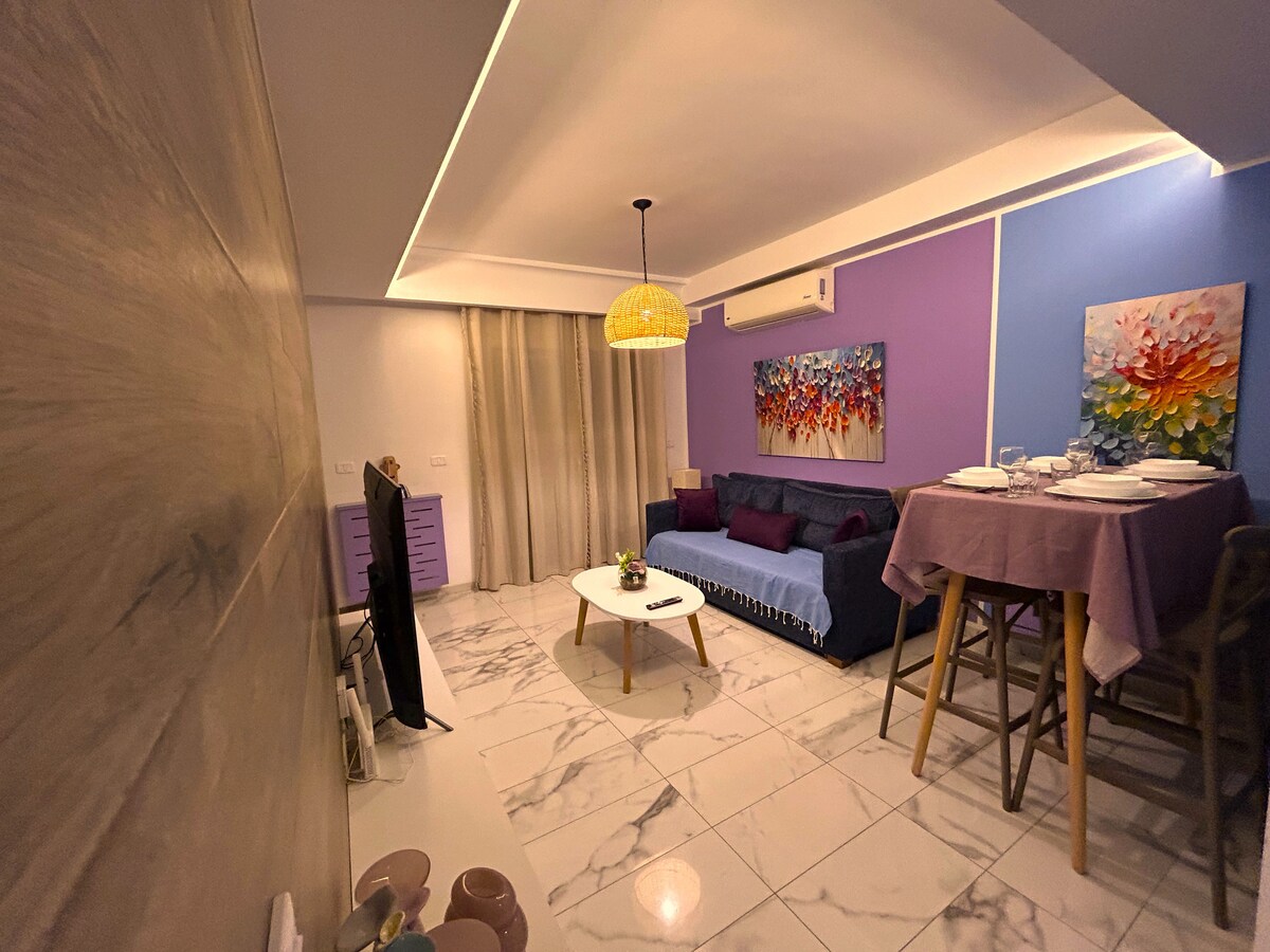 Superbe Appartement Découvrez ce magnifique appartement neuf au style contemporain unique. Profitez d'un séjour de standing alliant luxe et confort : sol en marbre noble, mur TV rétroéclairé et mobilier design. Les points forts : • Cuisine moderne totalement équipée. • Salon spacieux avec grand canapé d'angle. • Ambiance chaleureuse (tasseaux bois, LED). • Équipements neufs : Smart TV, Clim, Wi-Fi. Un cadre raffiné et impeccable pour un séjour d'exception. Réservez votre expérience luxe !