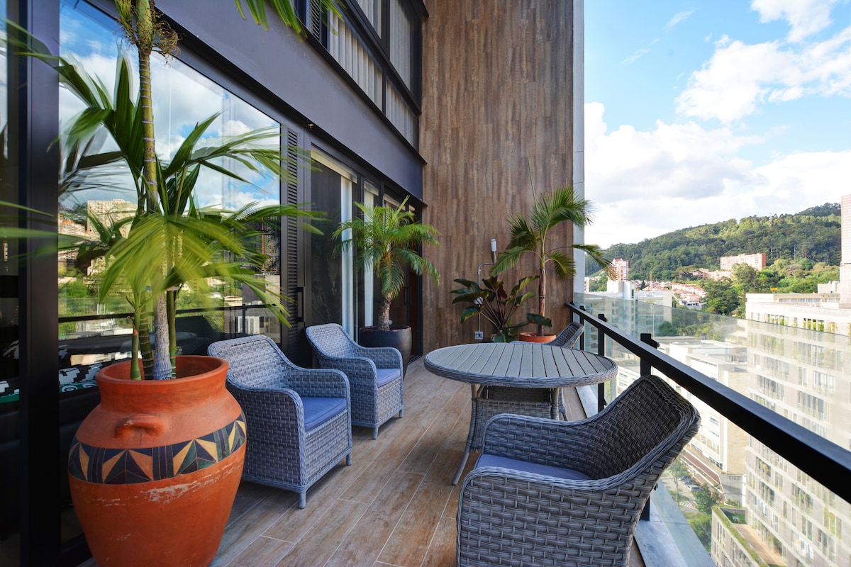 Znajdziesz się w prywatnym jacuzzi na niebie!!! , El Poblado, 300 MBPS Internet, telewizja HD, bezpłatny parking, świetne miejsce do pracy REmotel i dla tych, którzy chcą cieszyć się wakacjami, będziesz zaledwie 7 minut od UBER do Provenzy. W odległości spaceru znajduje się dworzec kolejowy. Centra handlowe Oviedo i Santa Fe, całodobowy sklep spożywczy i bankomat tuż za rogiem, budynek ma siłownię, przestrzeń coworkingową, śniadanie (opcjonalnie). Najlepsze miejsce na pobyt w Medellin. Wyjątkowe prywatne jacuzzi i taras MEDELLÍN! RNT253422