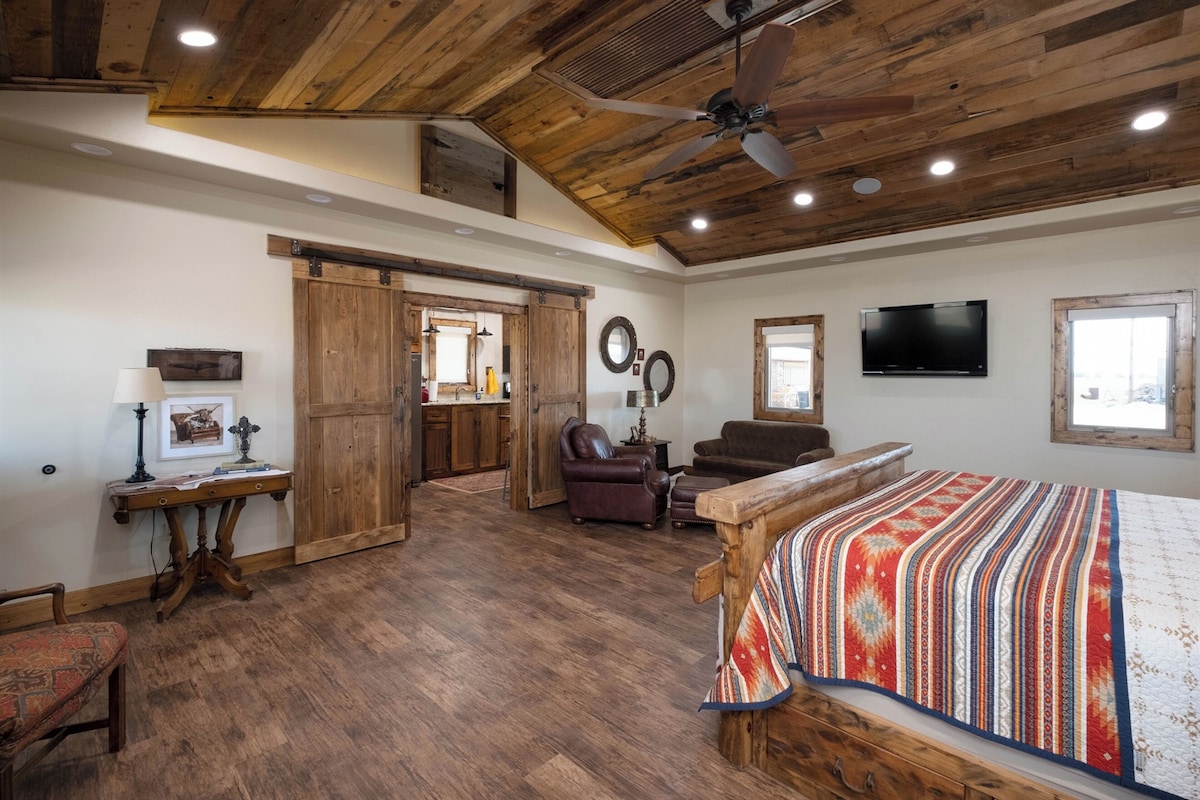 Obudź się przy widoku pasących się za oknem długorogów. Ten domek z dwupoziomowymi łóżkami znajduje się na 75 akrach, w odległości spaceru od innego domu na ranczu. To był pierwszy sklep skórzany Ricka! Idealne na weekendowy wypad! Położony zaledwie 10 minut od centrum Bartlesville i 40 minut od Pioneer Woman Mercantile. Cofnij się w czasie i ciesz się atmosferą dzikiego zachodu. Barak został wyposażony w luksusowe projekty kowbojskie autorstwa Yocham's Custom Leather & Cowboy Decor.
