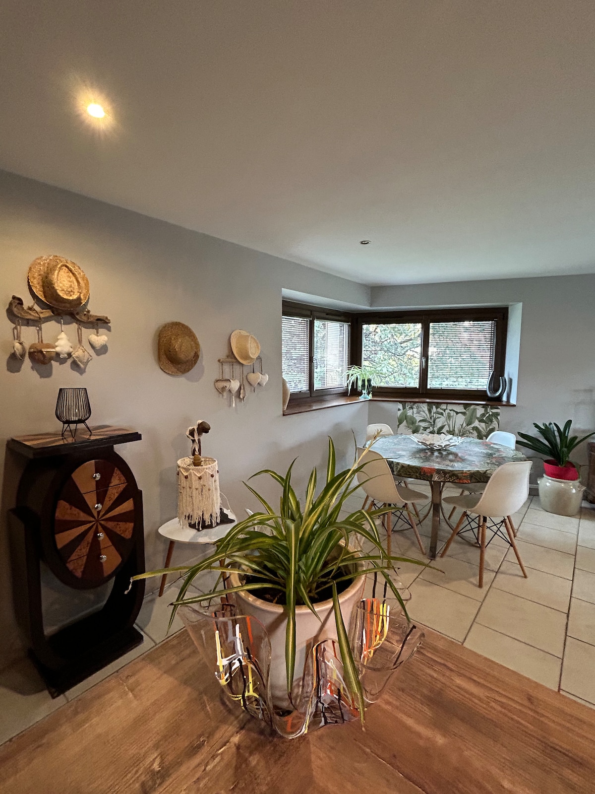 120 m2 zakwaterowania z 2 sypialniami (2 i 4 łóżka), kuchnią otwartą na salon z wysokim sufitem i dwoma prywatnymi tarasami. Będziesz mieć dostęp do bardzo dużego wspólnego obszaru na zewnątrz na dole posesji: letnia kuchnia, grill, slack-line, kręgielnia, gry dla dzieci i strefa relaksu. 10 minut od Langeac przecinanego rzeką Allier, tętniącym życiem targiem, parkiem wspinaczkowym, pociągiem turystycznym i sportami wodnymi. Wędrówki z domku.