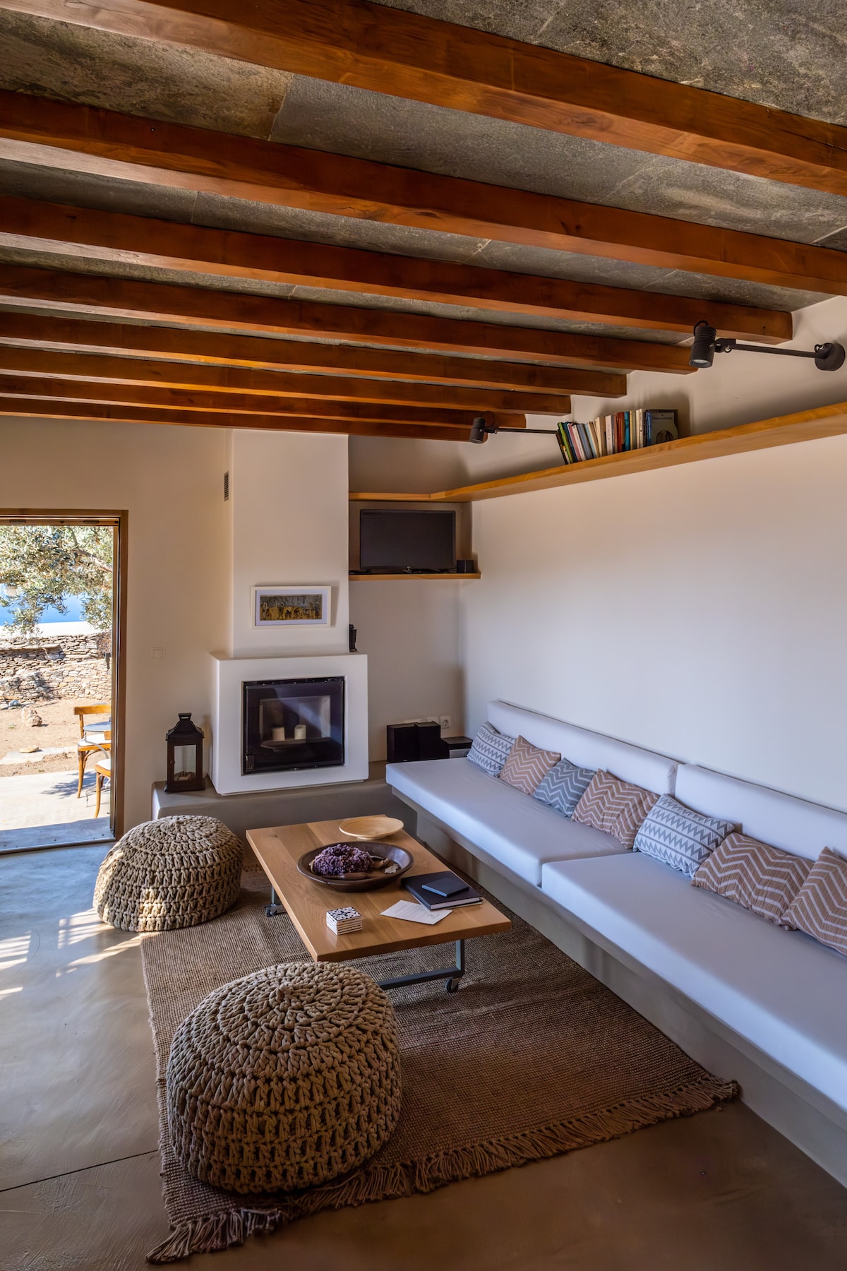 Ten ekologiczny dom o powierzchni 55 m² znajduje się 18 minut jazdy samochodem od portu Tinos, po zachodniej stronie wyspy, położony w gaju oliwnym i otoczony skalistym krajobrazem z widokiem na Morze Egejskie. Ten tradycyjny dom wiejski został przeprojektowany w minimalistycznym stylu. Przestrzeń jest idealna dla pary, która kocha wiejskie życie i prywatność. Oferuje szansę na odpoczynek od życia w mieście i ponowne połączenie się z prostotą i spokojem natury oraz uważnością.