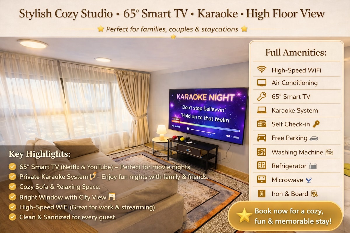 StarSuiteAC – Luxury Stay Above the Clouds! Luksusowo zaprojektowany bliźniak na wysokim piętrze, z zapierającym dech w piersiach widokiem na panoramę KL. Zrelaksuj się pod rozgwieżdżonym sufitem w galaktyce i ciesz się pobytem jak nikt inny! Ciesz się dźwiękoszczelną salą karaoke, bilardem i hokejem na powietrzu oraz kinem domowym z dźwiękiem przestrzennym, aby uzyskać prawdziwe wrażenia filmowe. Udogodnienia: kuchnia, lodówka, kuchenka mikrofalowa, urządzenie do gotowania ryżu, frytkownica, filtr do wody, pralka (z suszarką), fotel do masażu itp.