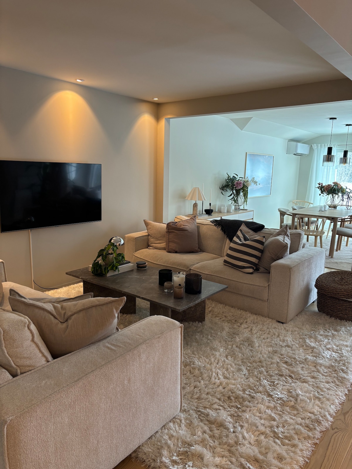 Witamy w jasnym i wygodnym domu w Ski, zaledwie 12 minut pociągiem do Oslo S. Idealne dla rodzin, par, znajomych lub na wyjazdy służbowe. Dom ma dobrze wyposażoną kuchnię, jadalnię i przestronny salon – idealny zarówno na krótkie, jak i długie pobyty. Lokalizacja: - Sklep spożywczy (Meny/Kiwi): 500 m – Centrum narciarskie i stacja kolejki narciarskiej: 900 m – Daisy: około 12 minut autobusem – Oslo: 12 minut pociągiem od Ski Konfiguracja miejsc do spania: - Sypialnia 1: podwójne łóżko (Double) – Sypialnia 2: małe łóżko podwójne + łóżko pojedyncze – Wnęka sypialna: 2 łóżka pojedyncze
