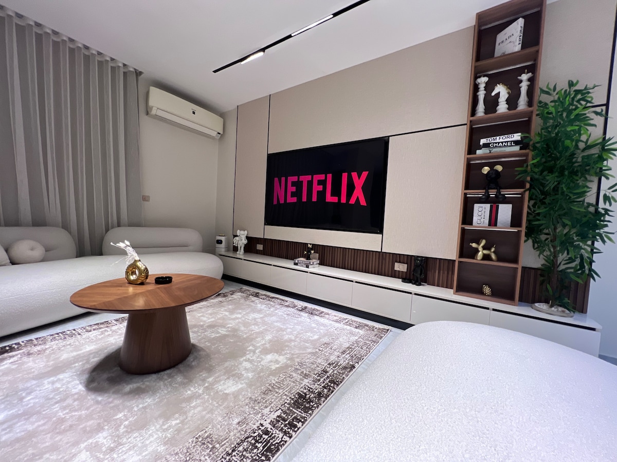 Witaj w Twoim eleganckim Zamalek Retreat by the Dancing Tree Ten świeżo odnowiony apartament położony w samym sercu Zamalek przy zabytkowej ulicy Taha Hussein oferuje idealne połączenie komfortu, designu i lokalizacji. Przestrzeń została starannie odnowiona z eleganckim, nowoczesnym akcentem. Jest umeblowana unikalnymi elementami, które sprawiają, że wyróżnia się na tle innych, a jednocześnie daje poczucie domu z dala od domu.