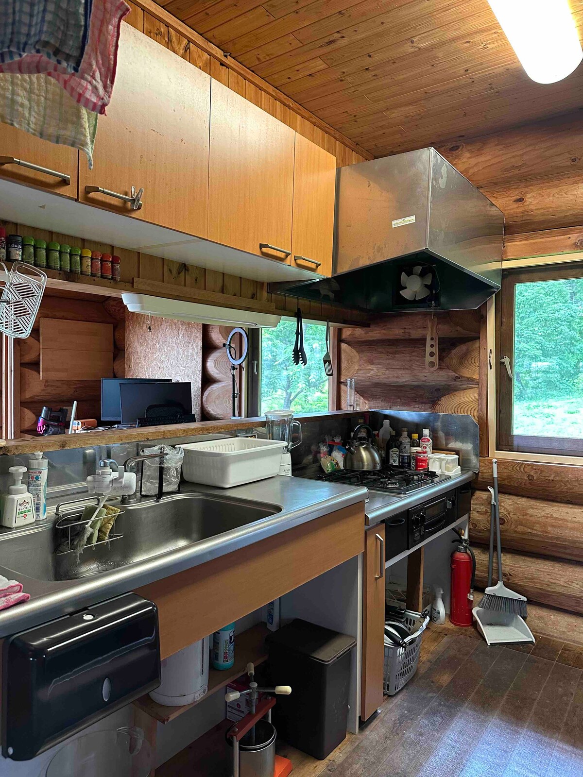 This is a stylish log cabin located in a pristine wooded area at an altitude of 1,300 meters (4,265 feet) in Iizuna, Nagano. The home is the perfect retreat for couples, families or small groups. It features a wood burning stove, large TV, Blu-ray/DVD player, stereo, leather chairs, and full kitchen. Enjoy hiking, skiing, BBQ, golf or hot spring onsen baths in the area. The home is approximately a 20-minute drive from Nagano Station on the JR Hokuriko Shinkansen bullet train and Shinano Railway.