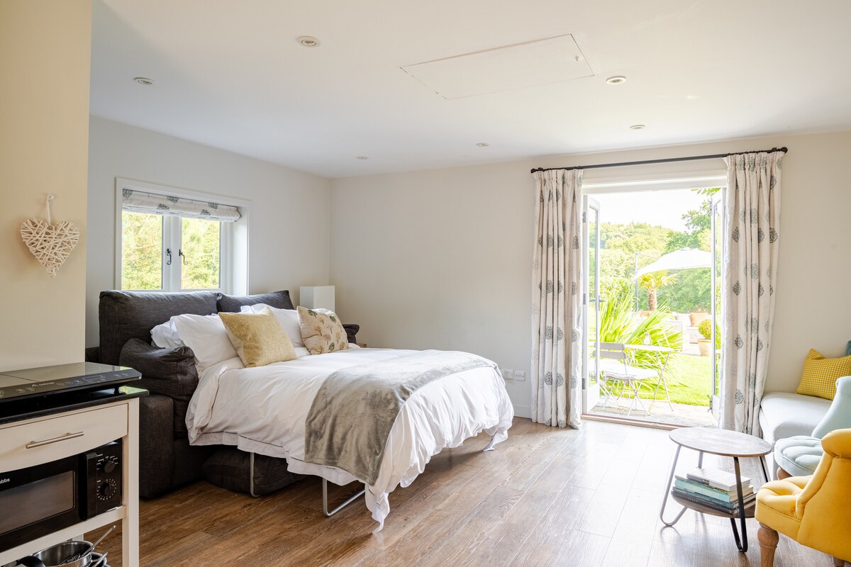 Samodzielny pokój dwuosobowy w naszym oddzielnym aneksie ogrodowym z prywatnym parkingiem i ładowaniem pojazdów elektrycznych w pobliżu. Wyposażony w łóżko typu king, telewizor, prysznic z wodospadem i oddzielną toaletę, suszarkę do włosów, czajnik i mini lodówkę. Przestrzeń na zewnątrz ze stołem i krzesłami do spożywania posiłków na świeżym powietrzu! Położony w pobliżu lasu Ashdown z dużą ilością spacerów po kraju. Jesteśmy 15 minut jazdy od Royal Tunbridge Wells i godzinę od Londynu i wybrzeża East Sussex. Dla Twojej wygody jesteśmy pod ręką w głównym domu.