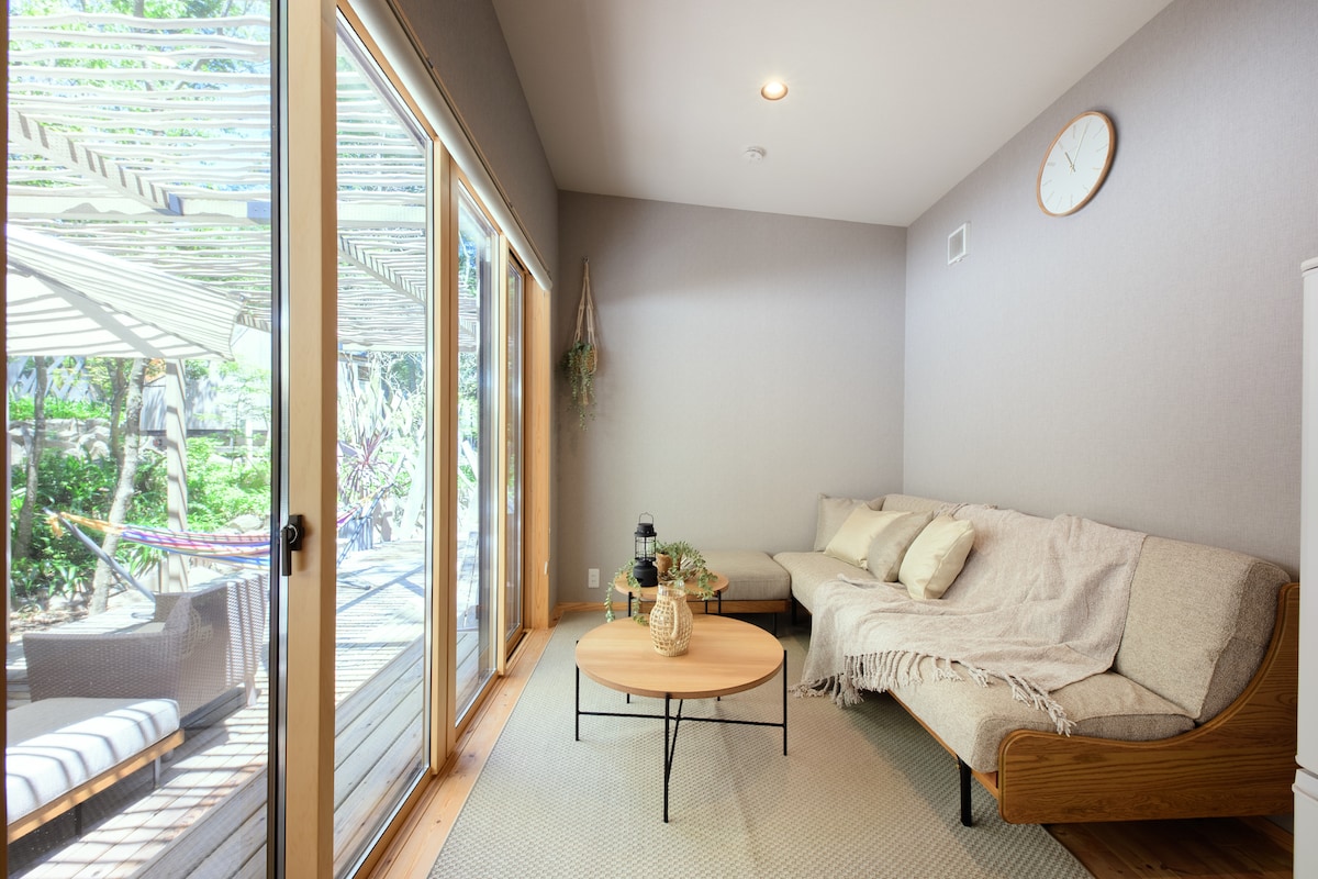 Prywatna willa w spokojnej okolicy Hakone Sengokuhara, gdzie możesz się zrelaksować i odpocząć Okolica mieszkalna w Hakone Sengokuhara. Nie w centrum atrakcji turystycznych, nie w górach, ale w spokojnym miejscu, gdzie można cieszyć się codziennością COCO VILLA Hakone Sengokuhara znajduje się. Nowoczesna rezydencja w japońskim stylu w czarnej tonacji wtapia się w otaczający krajobraz. Za dużymi oknami w salonie znajduje się duży ogród i wysokie drzewa, Chociaż jest to dzielnica mieszkalna, to spokojne miejsce, w którym można spędzić czas bez obawy, że ktoś Cię zobaczy. W ogrodzie znajduje się charakterystyczna sauna i palenisko. Wewnątrz znajduje się w pełni wyposażona kuchnia i duży salon, Wyposażony w pokój w stylu japońskim, który może być używany wygodnie nawet przez duże grupy, To rozwiązanie, w którym każda osoba może spędzać czas bez żadnych problemów. Zachowaj trochę dystansu od codziennego hałasu, W ciszy możesz skupić się na swoich zmysłach i czasie spędzanym z ludźmi. COCO VILLA Hakone Sengokuhara to Sam pobyt to miejsce, w którym można powoli się zrelaksować.