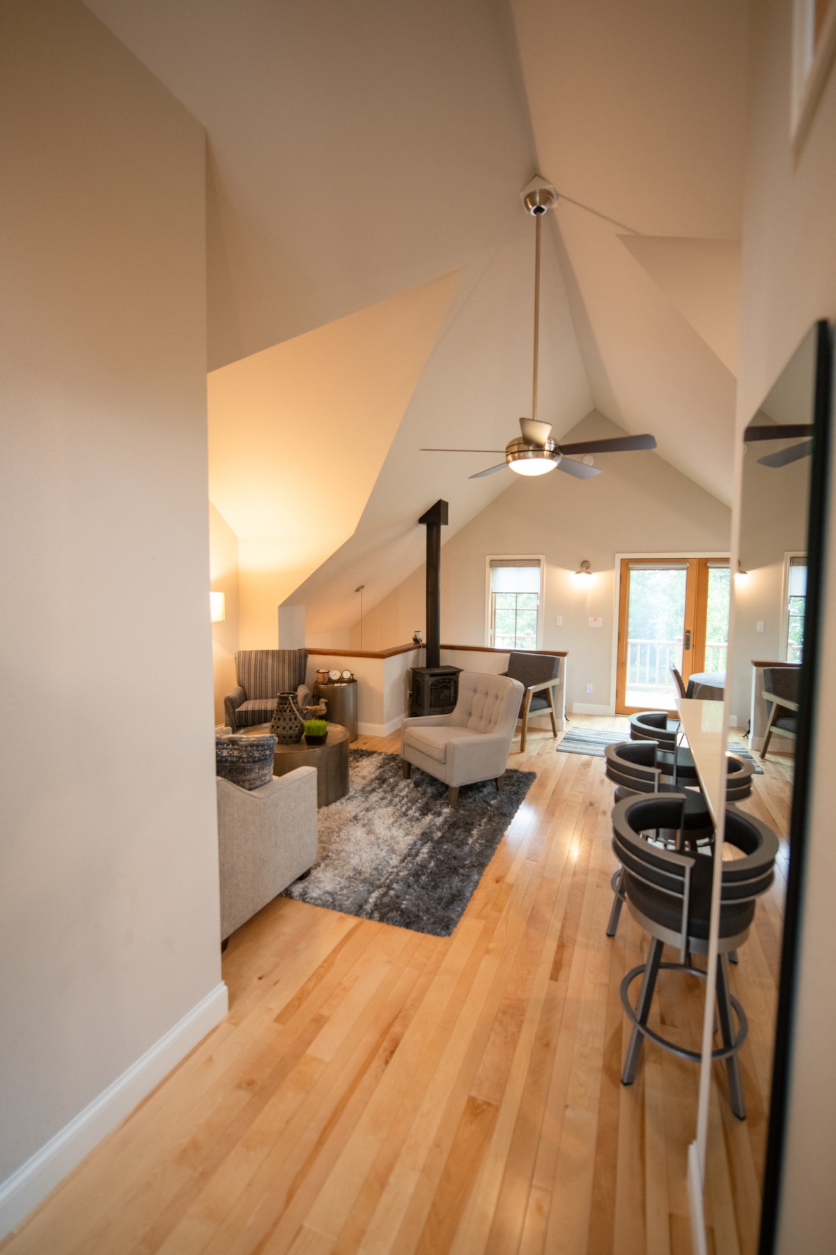 Ten niedawno odnowiony apartament z aneksem kuchennym ma prywatne wejście na drugim piętrze i taras na świeżym powietrzu, z którego można podziwiać wierzchołki drzew. Dom znajduje się na tej samej posesji co właściciel. To jest oddzielny budynek gospodarczy, który będziesz mieć tylko dla siebie. Kompletny aneks kuchenny, kuchenka, lodówka i grill, hamak, miejsca do siedzenia na świeżym powietrzu i prywatne przestrzenie do korzystania. Odpręż się w tej spokojnej i przytulnej przestrzeni. Psy mile widziane :) Na terenie obiektu mieszka przyjazny Chesapeake Bay Retreiver.