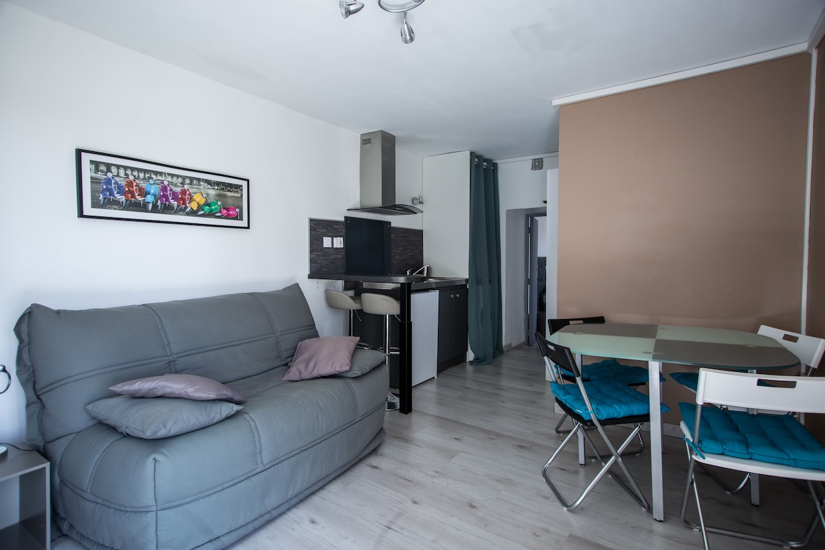 Studio neuf lumineux et au calme, classé 2 étoiles ⭐⭐, accolé à notre maison mais totalement indépendant avec entrée privative et terrasse. 🏡 Le studio comprend : ❄️ Climatisation 📺 Télévision avec accès à Netflix 🚿 Douche à l’italienne 🚽 WC suspendu 🛏️ Grand lit 160x200 cm 🍽️ Cuisine neuve avec : - Réfrigérateur - Plaque induction - Machine à café Nespresso ☕ ☀️ Terrasse 📶 Wi-Fi 🅿️ Stationnement gratuit devant le logement 🛏️ Linge de lit et serviettes de bain fournis