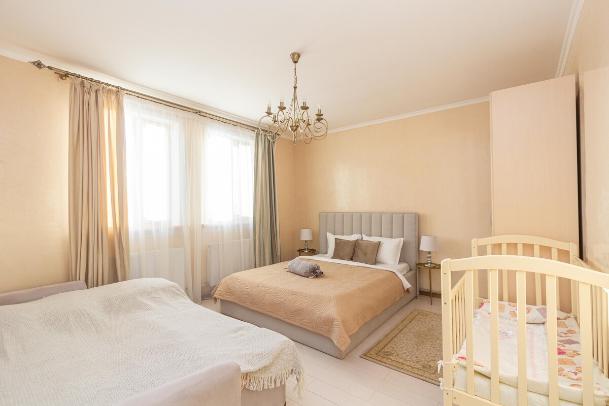 Добро пожаловать в квартиру у Ботанического сада! 🌿 🌳 Отличное расположение: через дорогу Ботанический сад, рядом Барыс Арена и Астана Арена для любителей спорта и концертов. 🏡 Квартира с суперсовременным ремонтом, просторной гостиной, полностью оборудованной кухней и уютной спальней. Идеальное место для отдыха и комфортного проживания в центре событий!