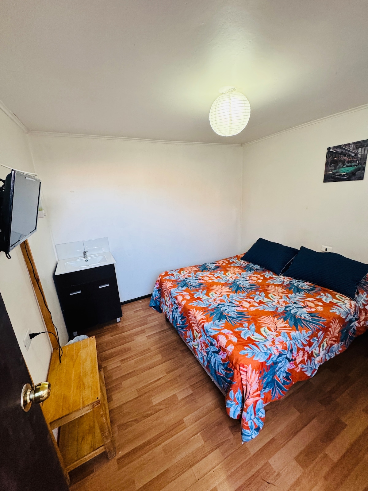Piękne i wygodne mieszkanie do wynajęcia, niezależny domek, wyposażony dla 1 do 4 osób, z dwiema sypialniami, każda z podwójnym łóżkiem i futonem w salonie. Jest całkowicie prywatny, z łazienką, wyposażoną kuchnią, salonem. Nie ma prywatnego parkingu. Ta chata znajduje się przecznicę od Plaza de Armas, Playa Mansa, ze względu na lokalizację i bezpieczeństwo, sprawia, że jest to doskonały wybór dla rodzin , łatwa lokalizacja do Bahia Inglesa
