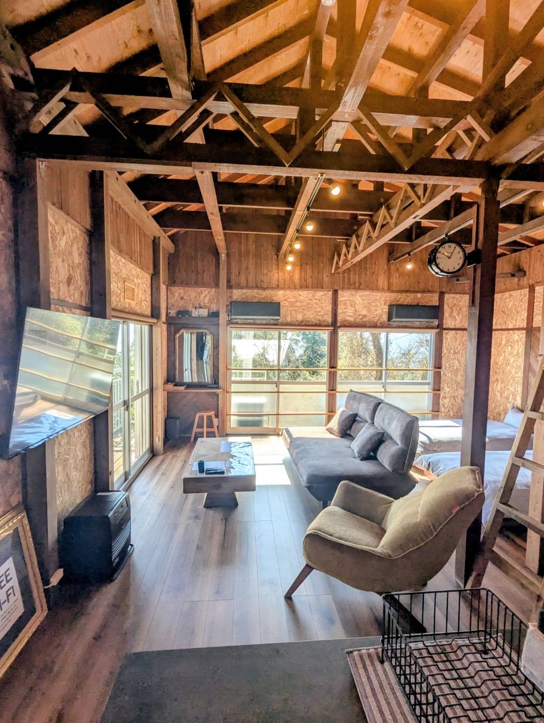 Prywatny kurort KANON znajduje się w naturalnej wiosce, 15 minut jazdy od Atami Sta. Nieruchomość jest całkowicie prywatna i posiada powierzchnię ok. 176㎡ z 5LDK i dużym podwórkiem. Każda sypialnia na drugim piętrze ma duże okno i dostęp do drewnianego tarasu, dzięki czemu możesz cieszyć się pięknym widokiem. 5LDK obejmuje salon, jadalnię, kuchnię, 5 sypialni, łazienkę i 2 toalety. Możesz korzystać z przyborów kuchennych i pralni, dzięki czemu idealnie nadaje się na pobyt długoterminowy.