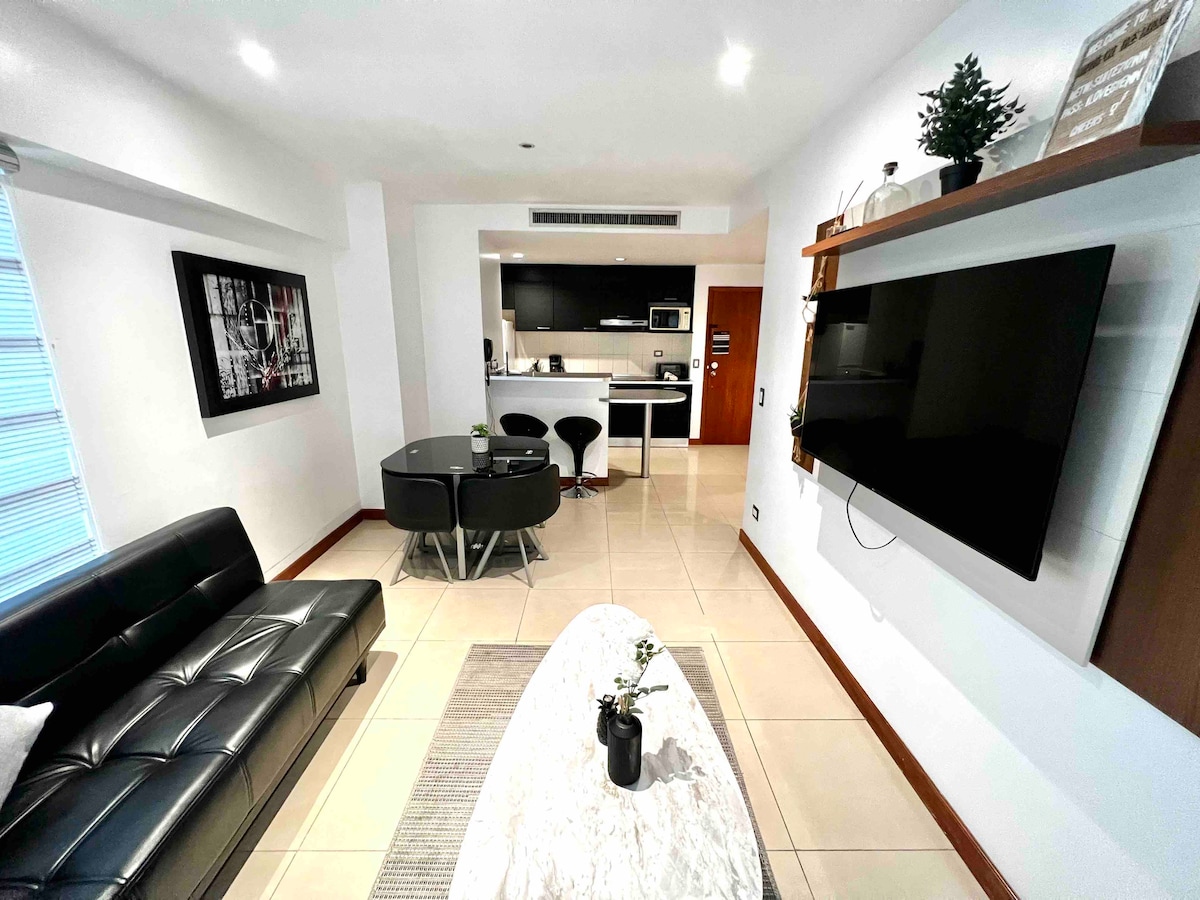 Umeblowany apartament, idealny dla 2 do 3 osób, doskonała lokalizacja. Posiada wszystkie udogodnienia, dzięki którym poczujesz się jak w domu i będziesz mieć miłe doświadczenia. *Usługi: - Telewizja z Netflix i Youtube - Szybkie Wi-Fi - Basen - Siłownia *Lokalizacja: Obok Omnihospital (apteka czynna 24/7) Lotnisko 5 minut samochodem Przed Mall del Sol W pobliżu centrum kongresowego. *Parking: - Publiczny (bezpłatny poza budynkiem) - Prywatny (od 8 do 10 USD za noc, w zależności od dostępności)