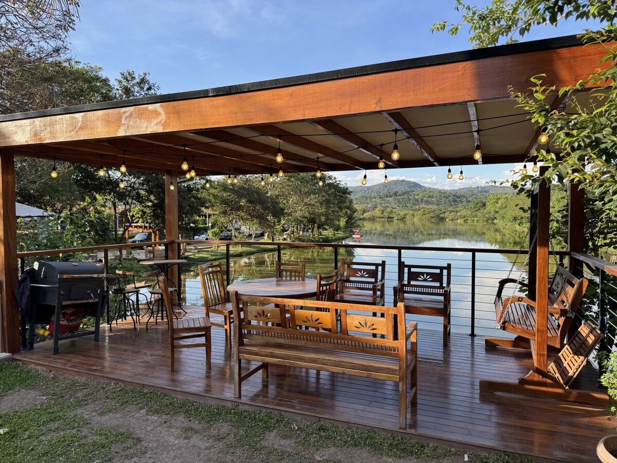 Casa Aconchegante Urok i luksus to zakwaterowanie z widokiem na basen i piękny zachód słońca. Wentylator sufitowy w dwóch apartamentach Szeroki pokój z kominkiem Stół obiadowy Stół bilardowy Open Concept Gourmet Kitchen Siatki i meble w strefie przy basenie Obóz 400 Mts dla Twojego pupila i dzieci Ognisko Otoczenie dla zwierząt Dostawa pod drzwi domu Loteamento w Portaria Akceptujemy zwierzęta. Pościel, poszewki na poduszki i ręczniki nie są dostępne